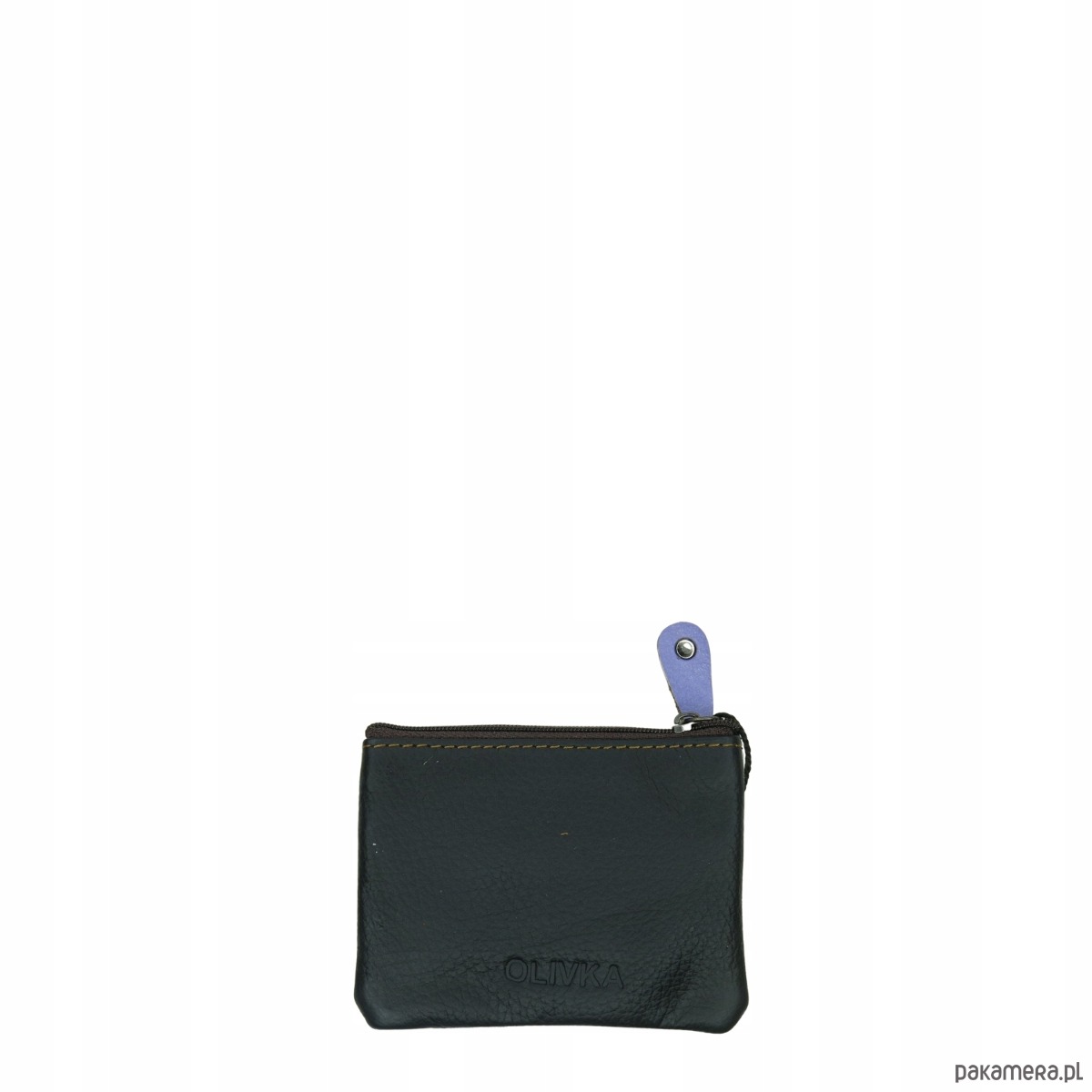 Saszetka skórzana bilonówka skóra naturalna na klucze bilon poręczna OLIVKA
