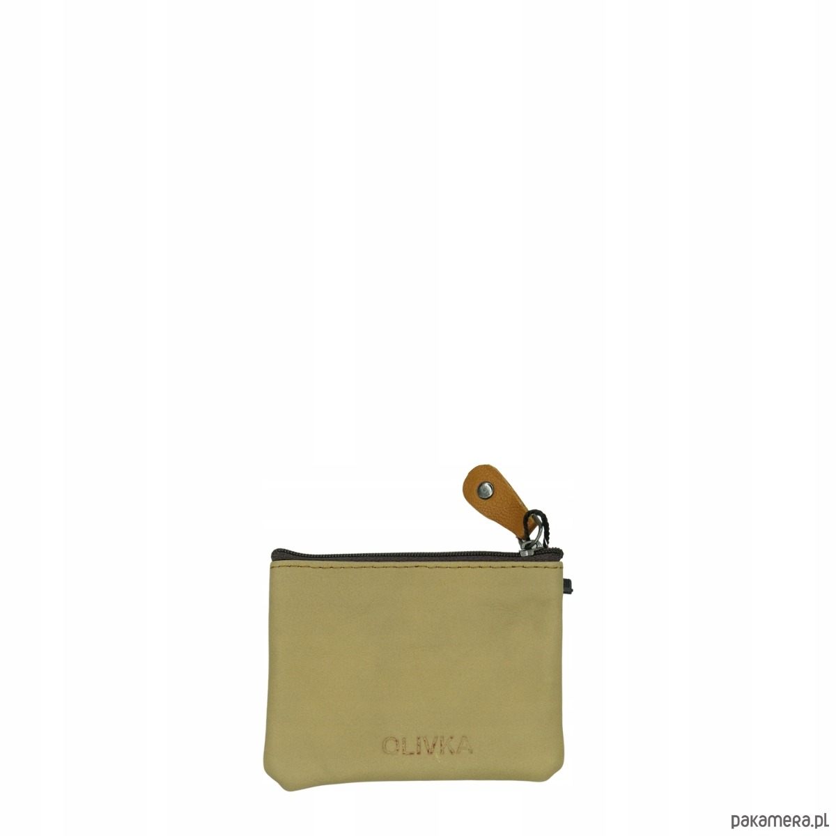 Saszetka skórzana bilonówka skóra naturalna na klucze bilon poręczna OLIVKA