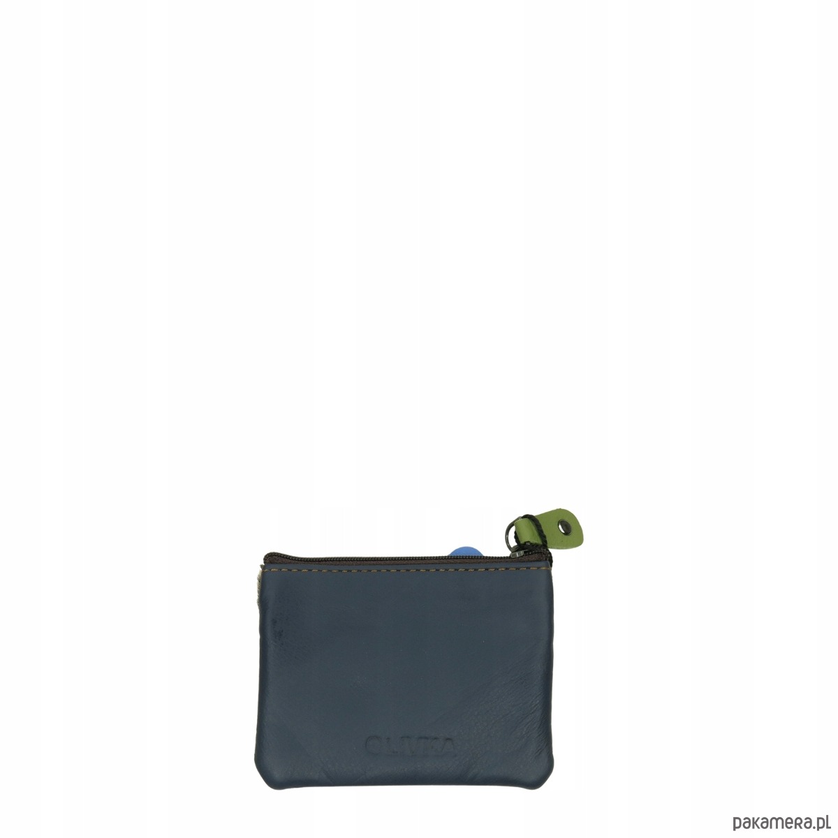 Saszetka skórzana bilonówka skóra naturalna na klucze bilon poręczna OLIVKA