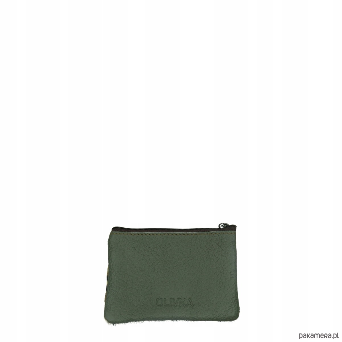 Saszetka skórzana bilonówka skóra naturalna na klucze bilon poręczna OLIVKA