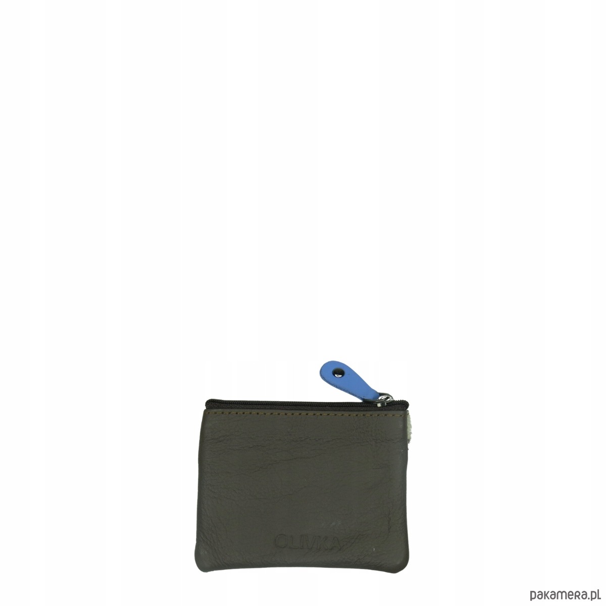 Saszetka skórzana bilonówka skóra naturalna na klucze bilon poręczna OLIVKA