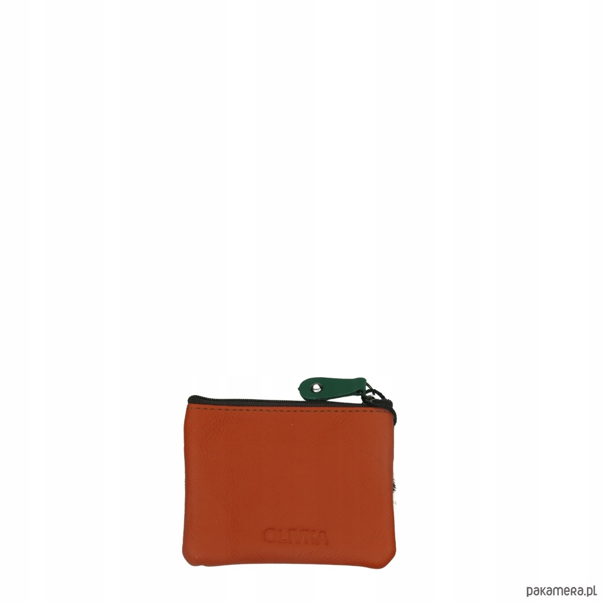 Saszetka skórzana bilonówka skóra naturalna na klucze bilon poręczna OLIVKA