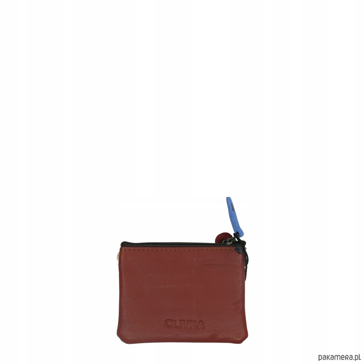 Saszetka skórzana bilonówka skóra naturalna na klucze bilon poręczna OLIVKA
