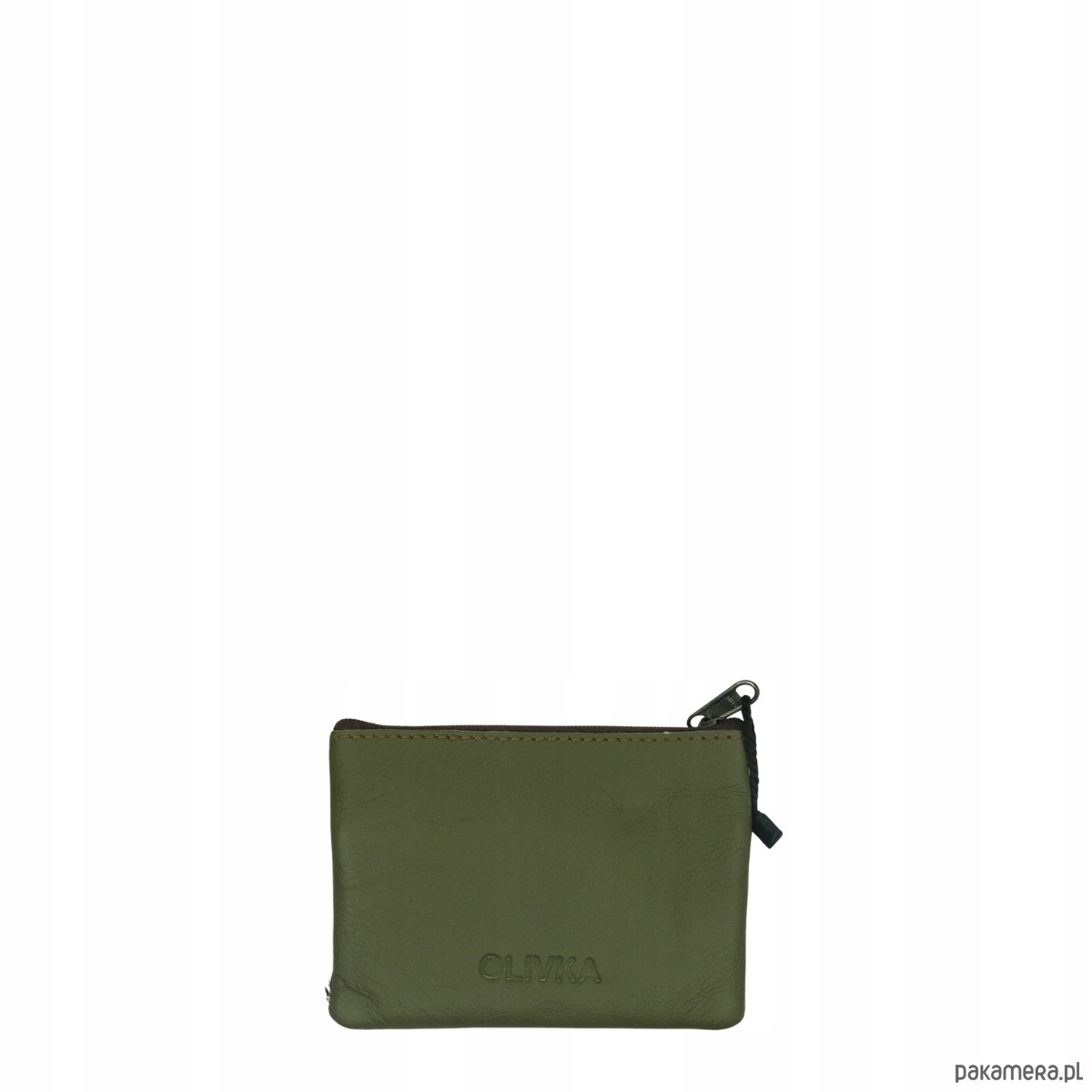 Saszetka skórzana bilonówka skóra naturalna na klucze bilon poręczna OLIVKA
