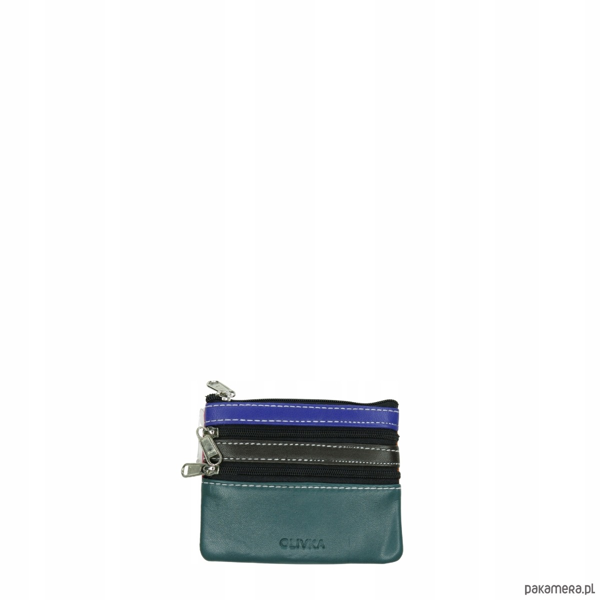Saszetka skórzana na klucze z kółkiem monety bilonówka skórzana OLIVKA