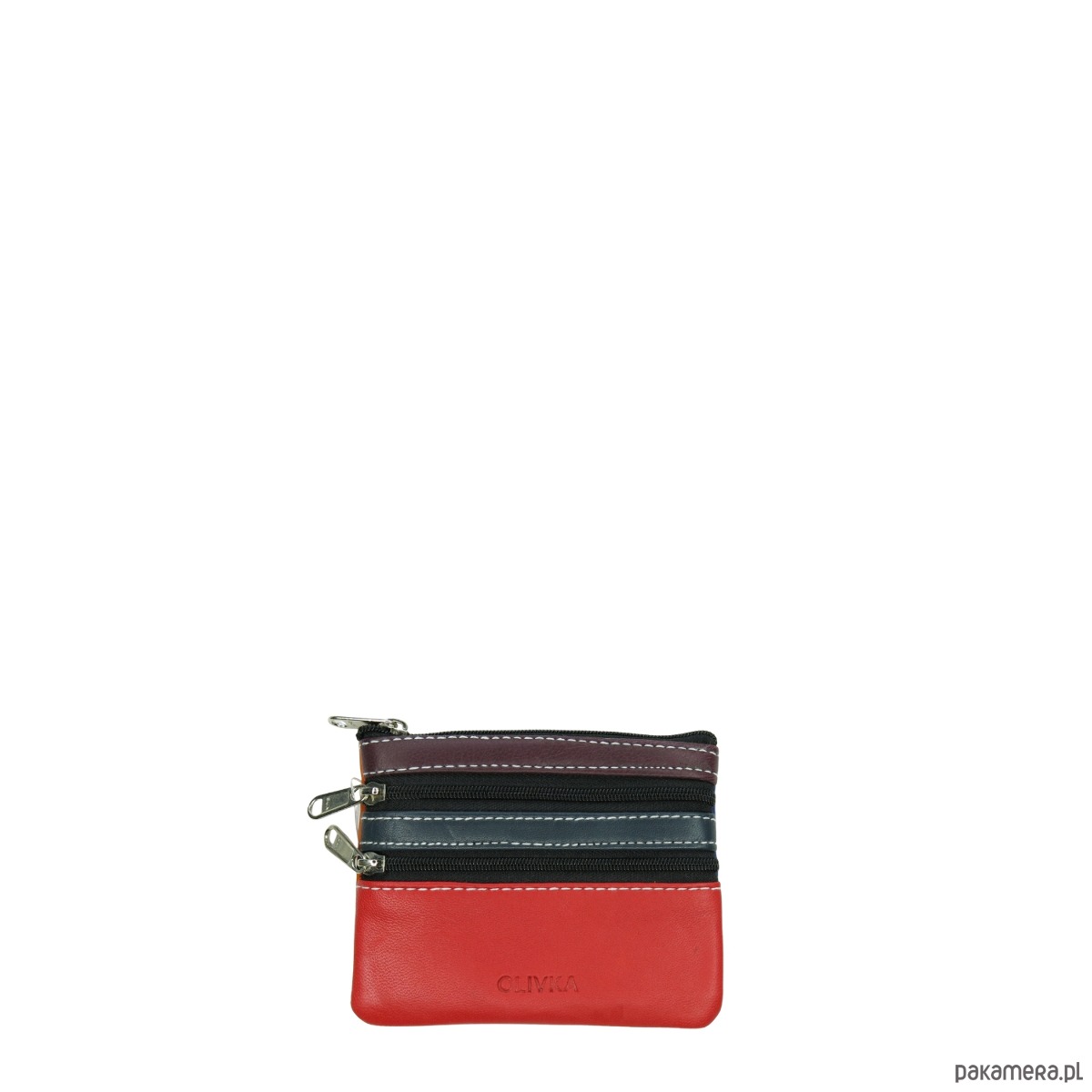 Saszetka skórzana na klucze z kółkiem monety bilonówka skórzana OLIVKA
