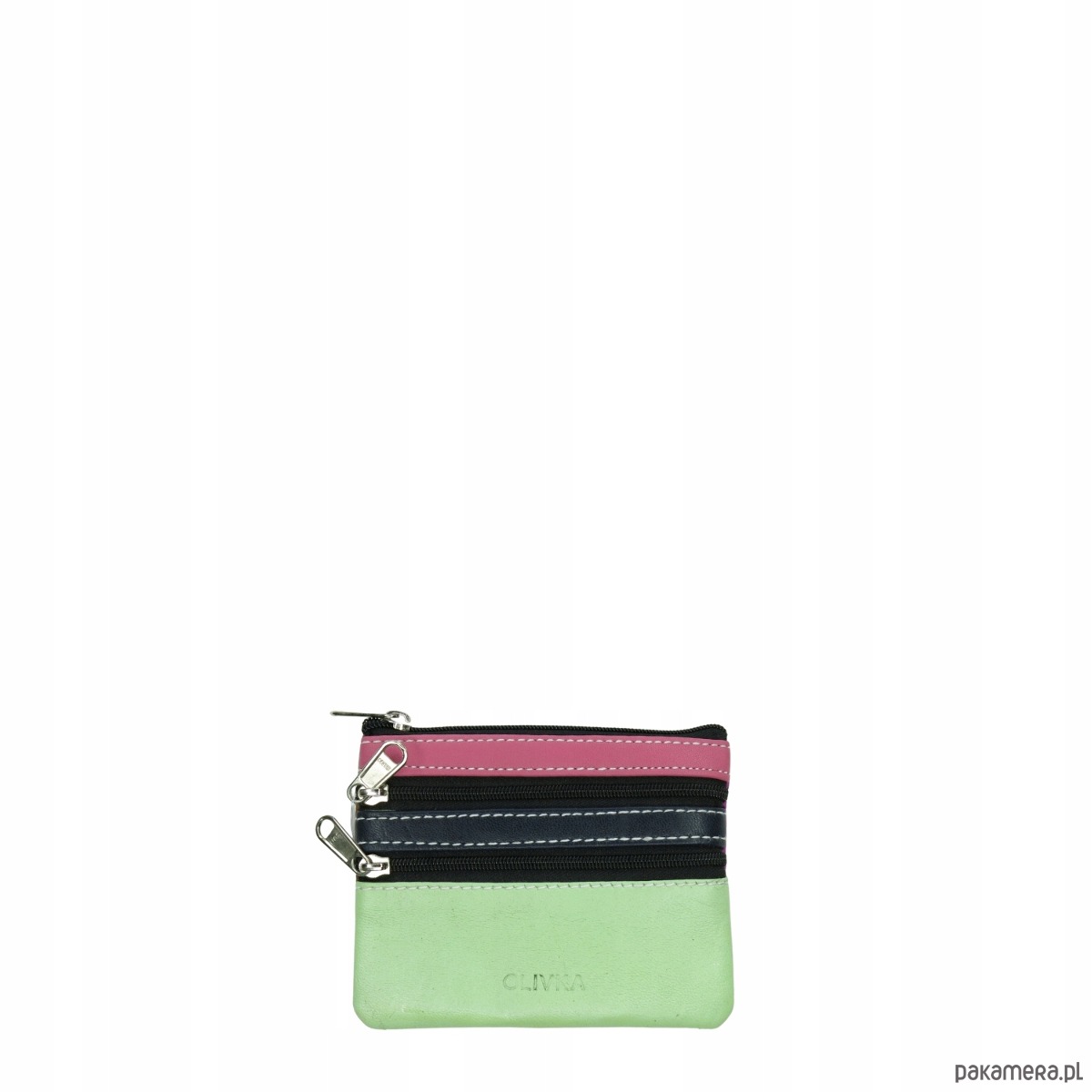 Saszetka skórzana na klucze z kółkiem monety bilonówka skórzana OLIVKA