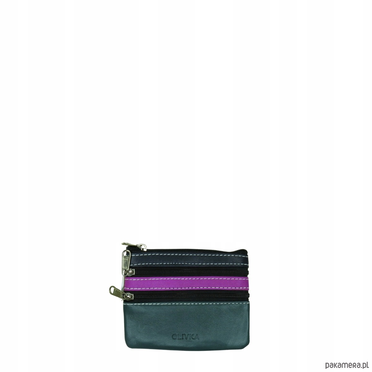 Saszetka skórzana na klucze z kółkiem monety bilonówka skórzana OLIVKA