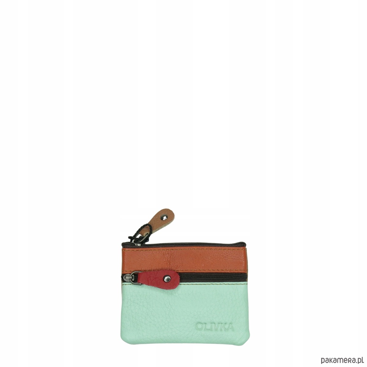 Saszetka skórzana skóra naturalna na klucze bilon poręczna OLIVKA