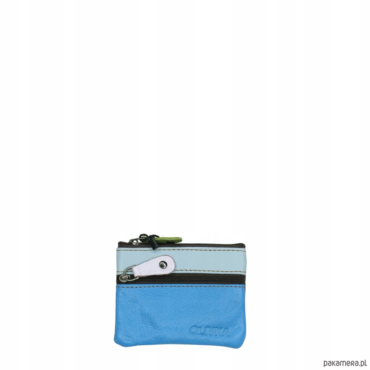 Saszetka skórzana skóra naturalna na klucze bilon poręczna OLIVKA