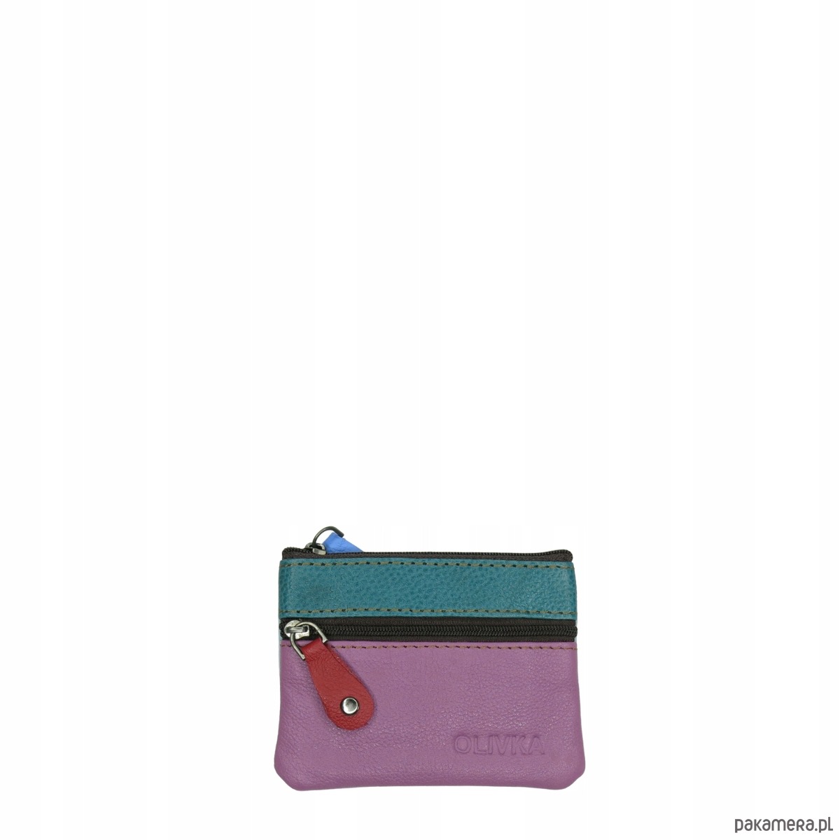 Saszetka skórzana skóra naturalna na klucze bilon poręczna OLIVKA