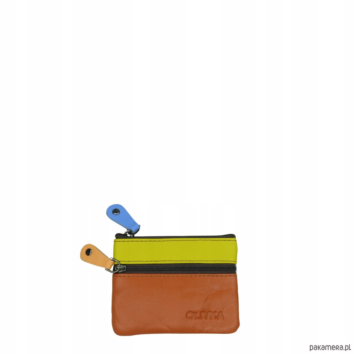 Saszetka skórzana skóra naturalna na klucze bilon poręczna OLIVKA