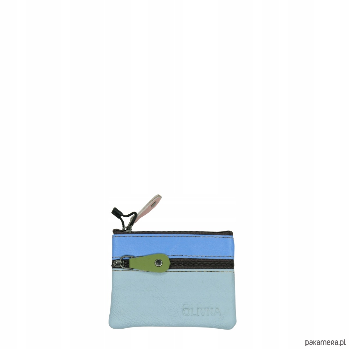 Saszetka skórzana skóra naturalna na klucze bilon poręczna OLIVKA