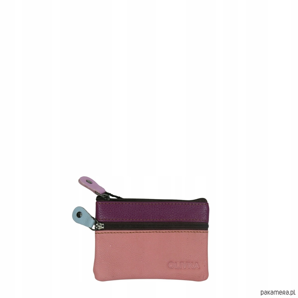 Saszetka skórzana skóra naturalna na klucze bilon poręczna OLIVKA