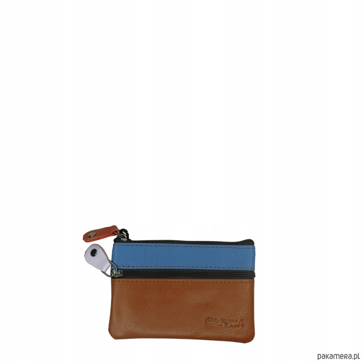 Saszetka skórzana skóra naturalna na klucze bilon poręczna OLIVKA