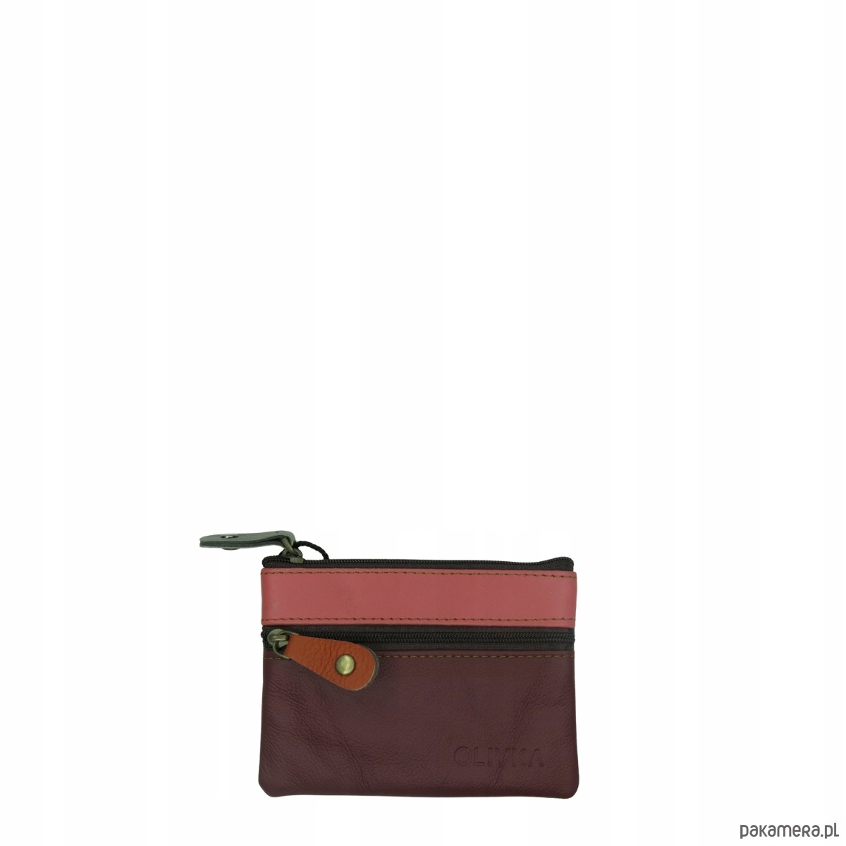 Saszetka skórzana skóra naturalna na klucze bilon poręczna OLIVKA
