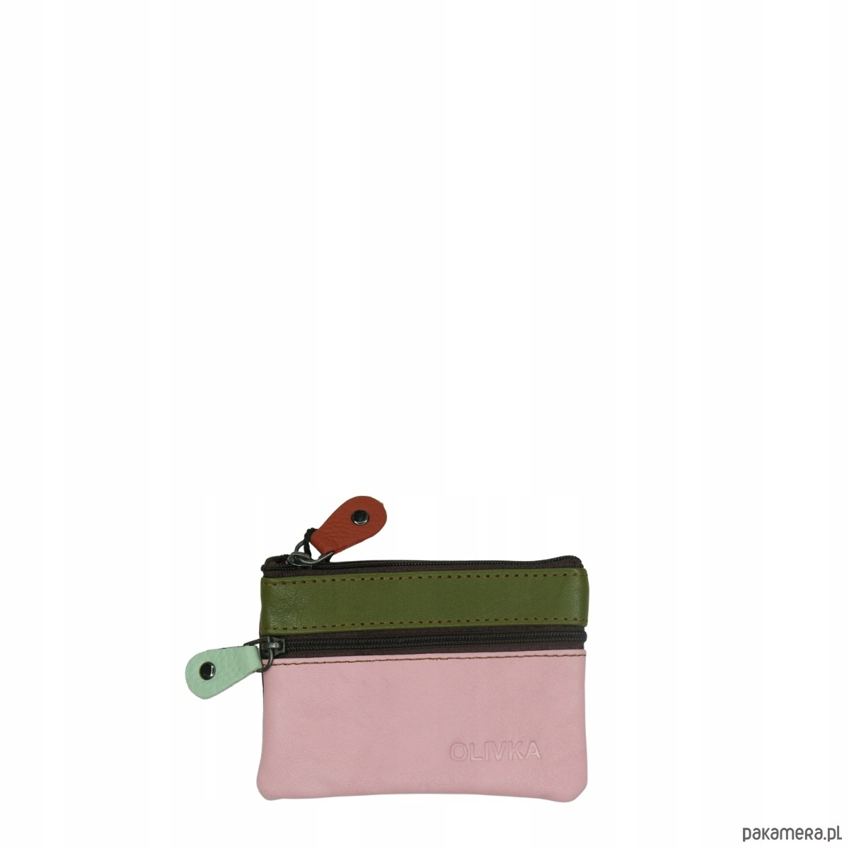 Saszetka skórzana skóra naturalna na klucze bilon poręczna OLIVKA