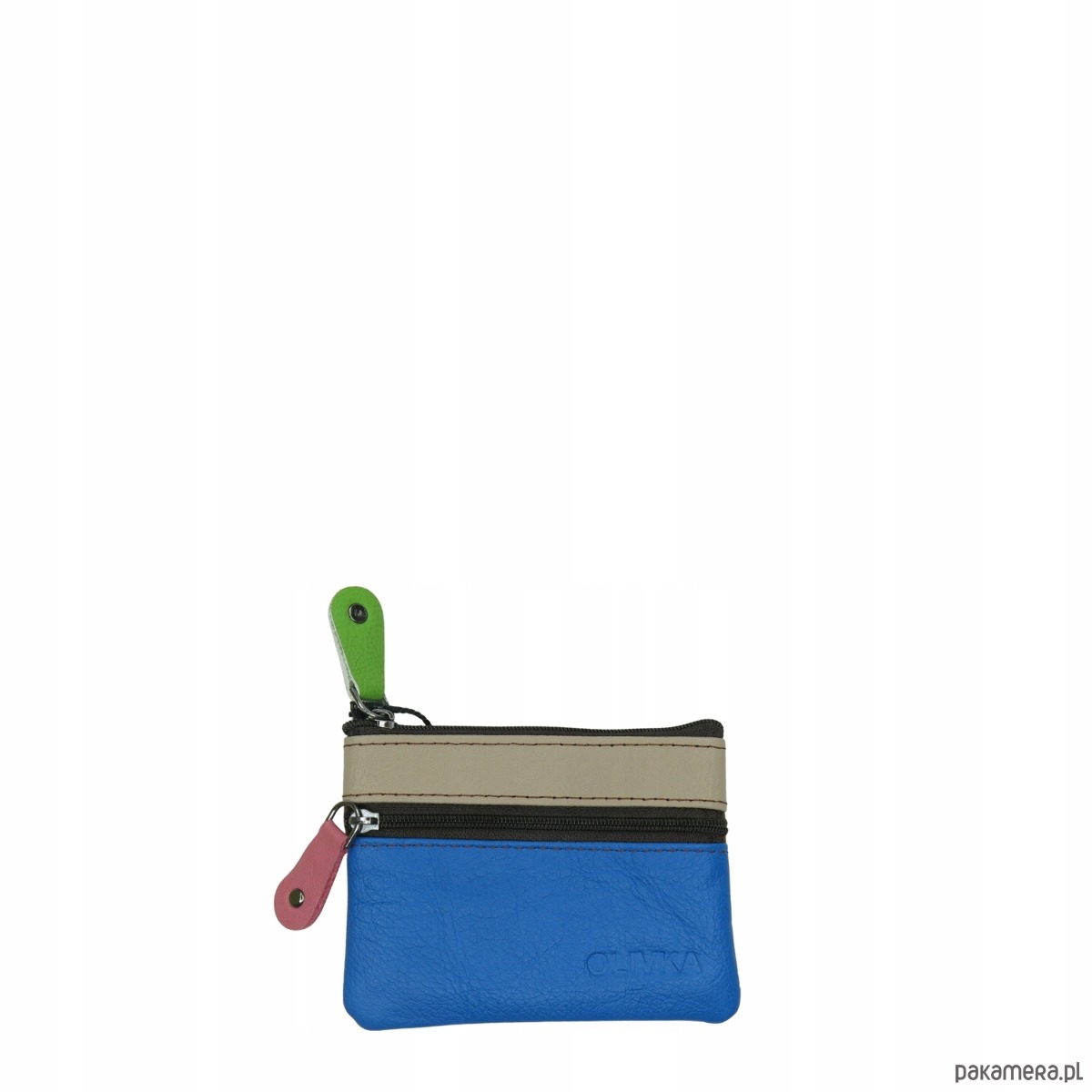 Saszetka skórzana skóra naturalna na klucze bilon poręczna OLIVKA