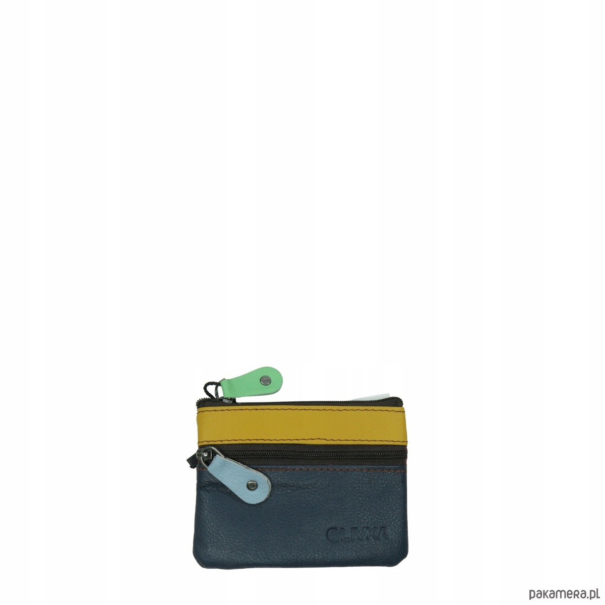 Saszetka skórzana skóra naturalna na klucze bilon poręczna OLIVKA