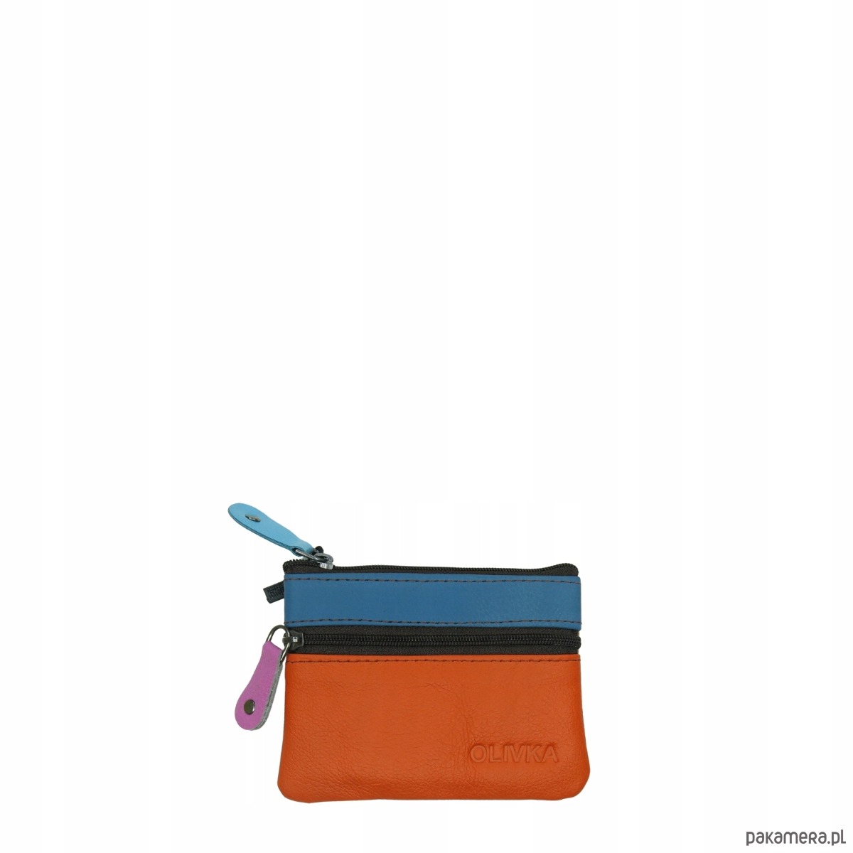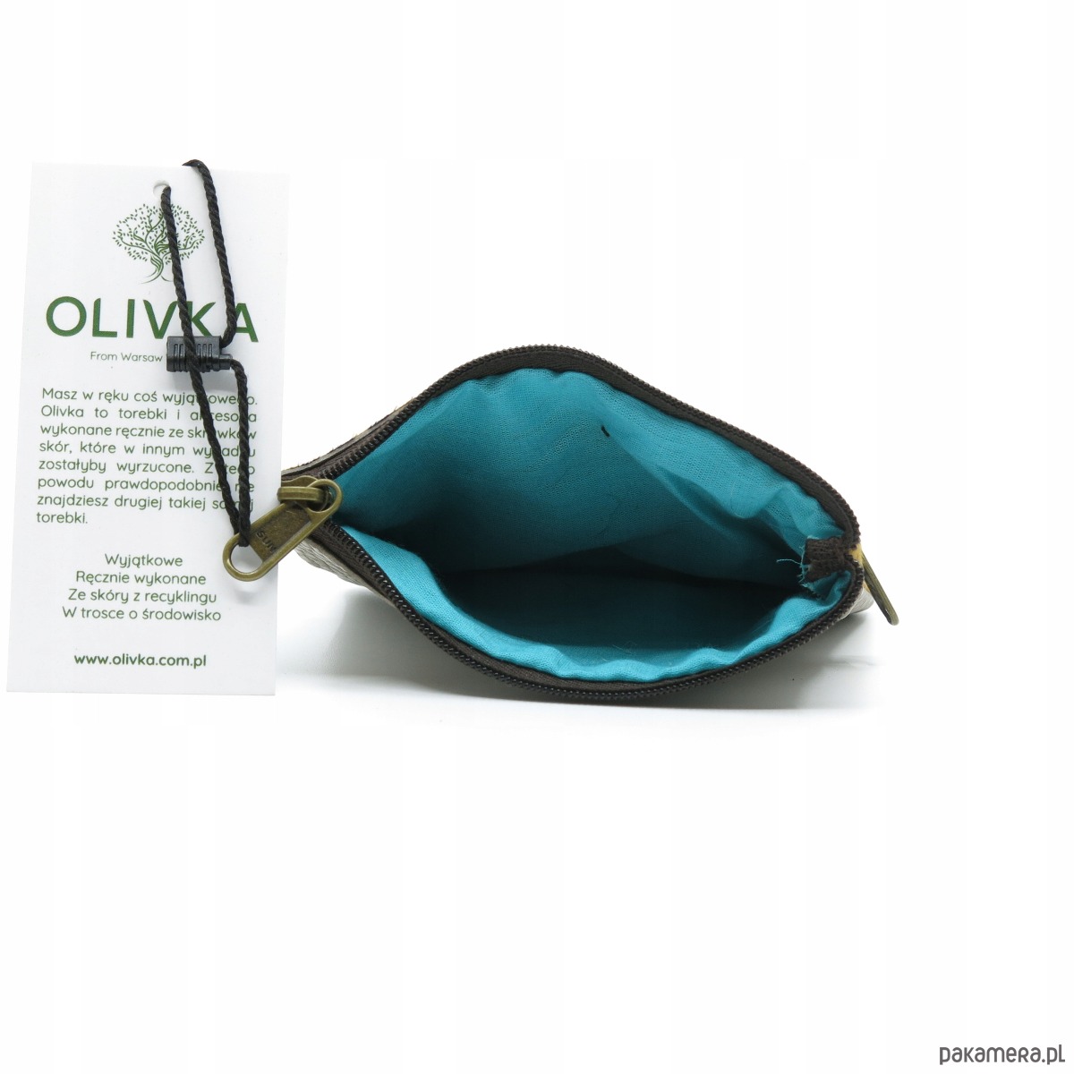 Saszetka skórzana skóra naturalna na klucze bilon poręczna OLIVKA