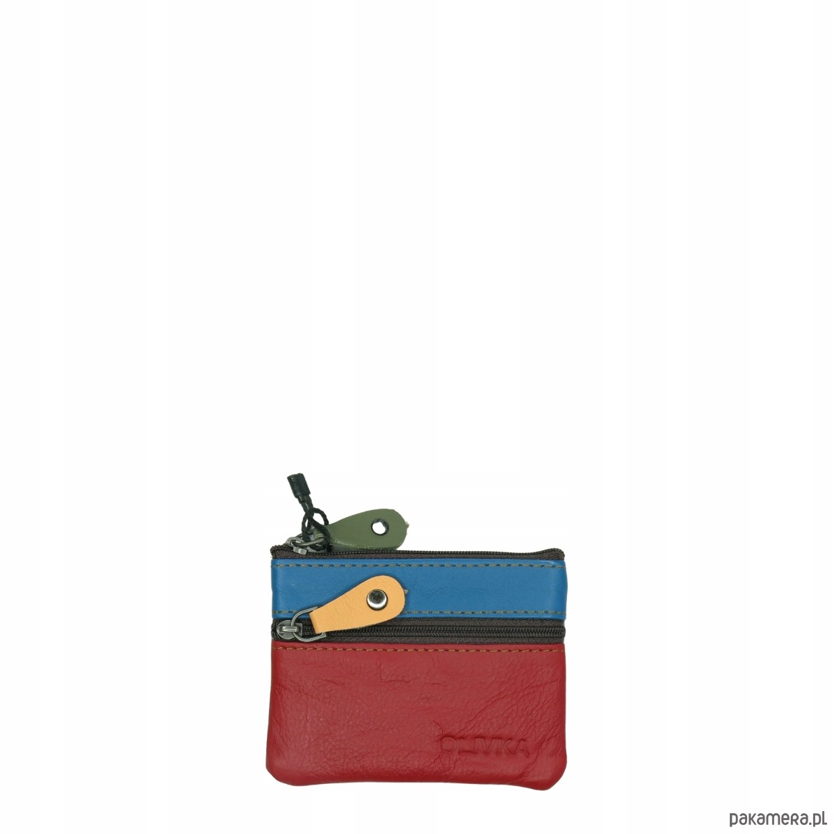 Saszetka skórzana skóra naturalna na klucze bilon poręczna OLIVKA