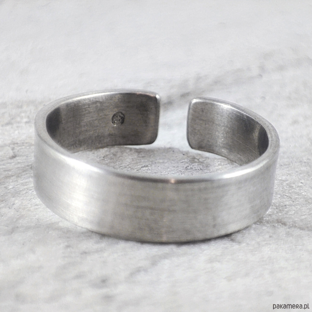 Pierścionek ze srebra o gładkiej matowej powierzchni.