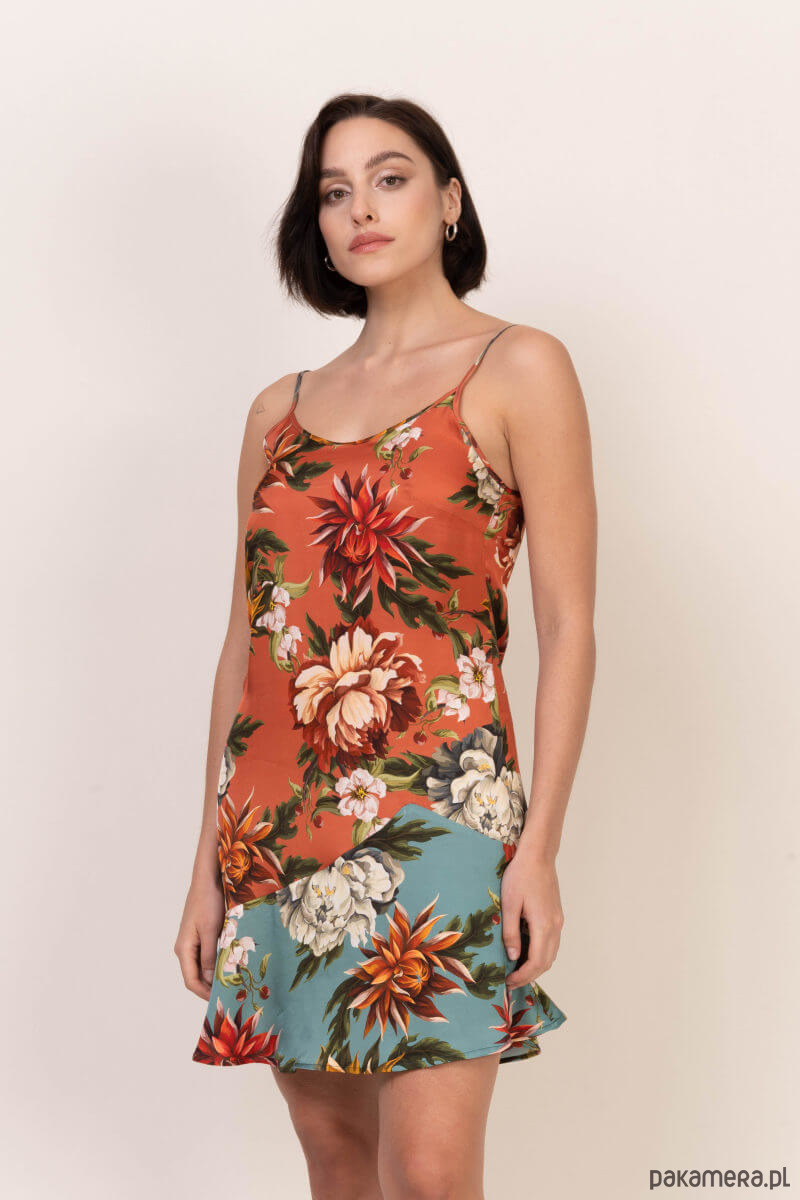 Zanurz się w spokojnej nocy, otulona wykwintnym wzorem roślinnym, który wypoczywa na tle głębokiej miedzi.