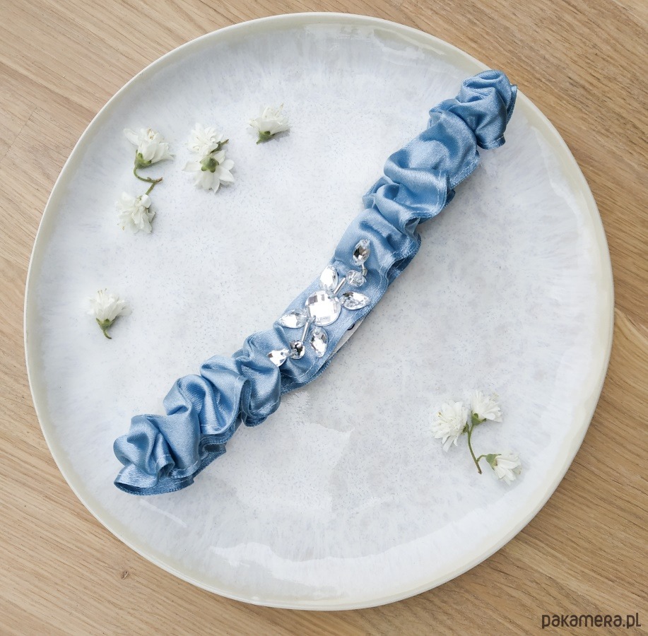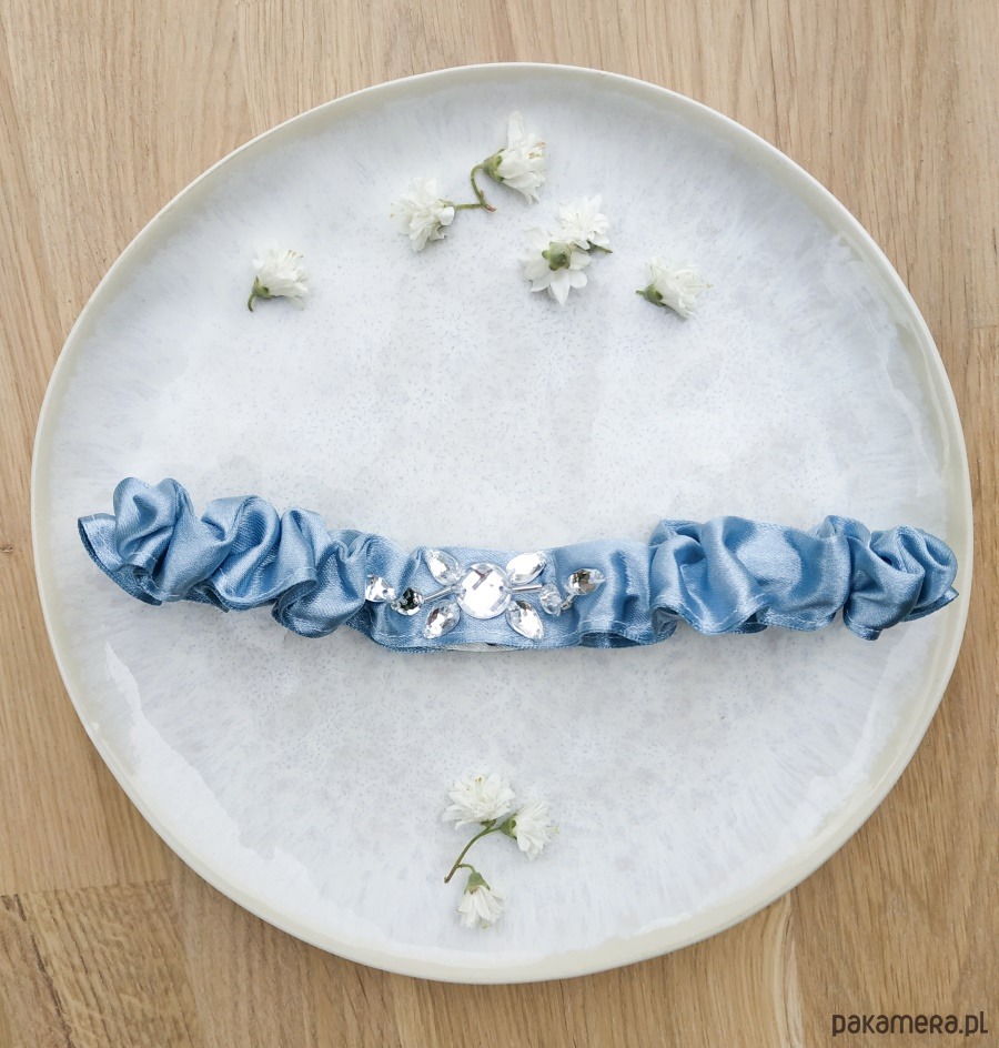 Przedstawiam Ci niezwykle elegancką podwiązkę ślubną Marie, która została uszyta z wysokiej jakości satyny w kolorze niebieskim.