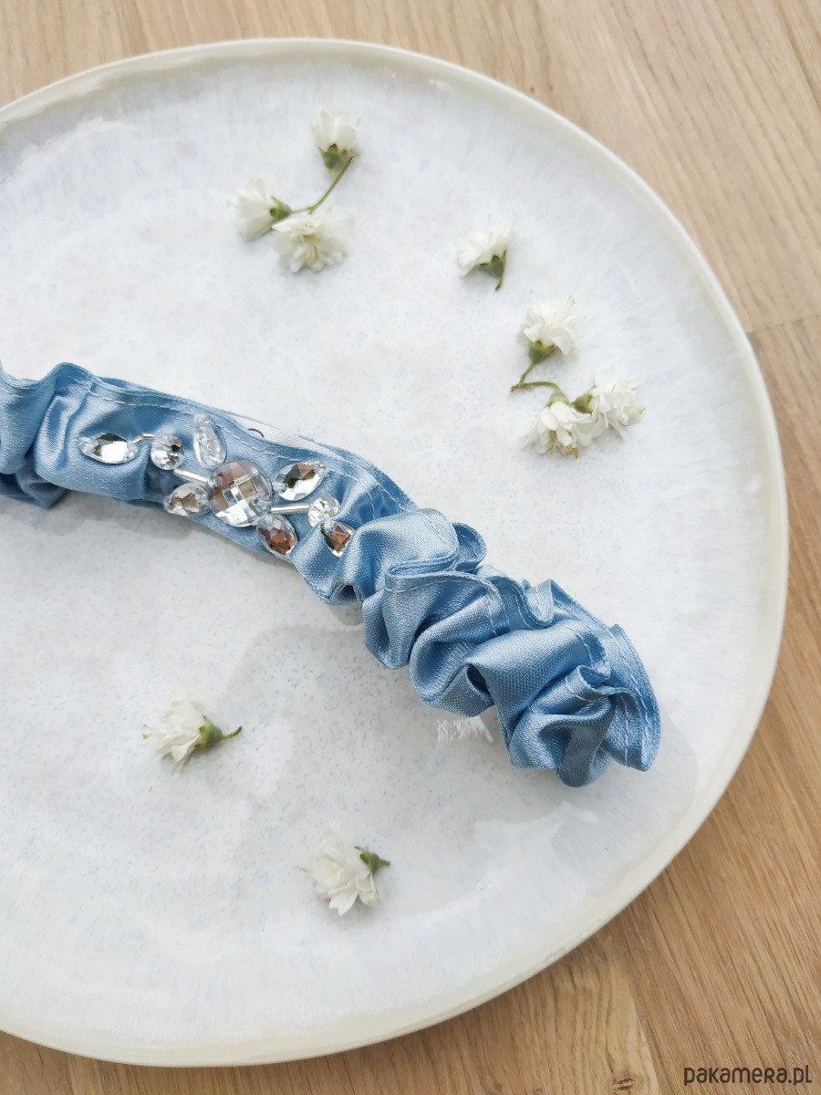 Centralną część podwiązki zdobią ręcznie przyszywane kryształki.