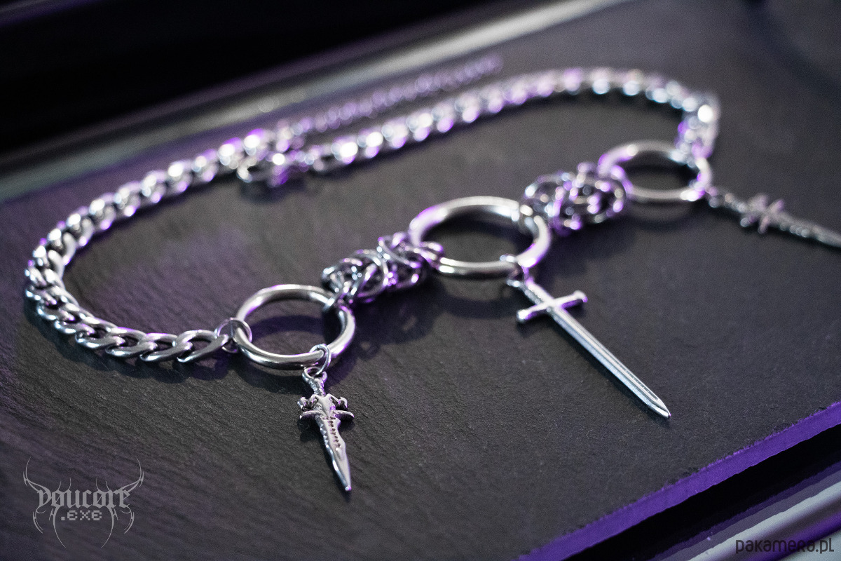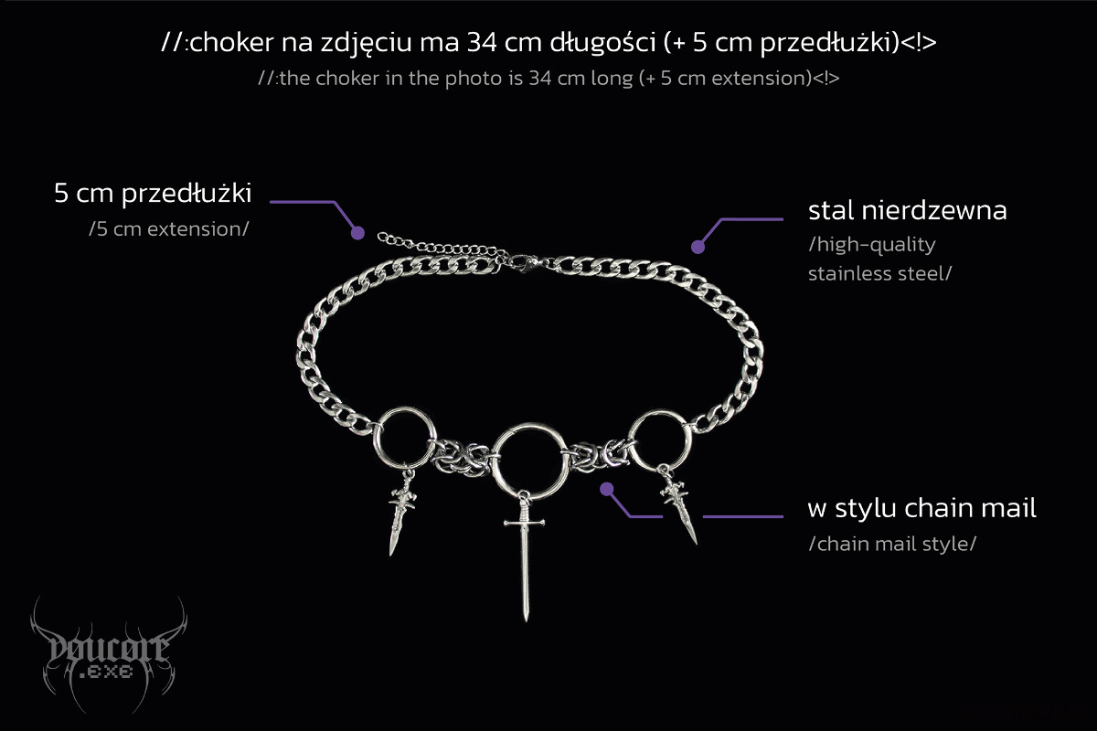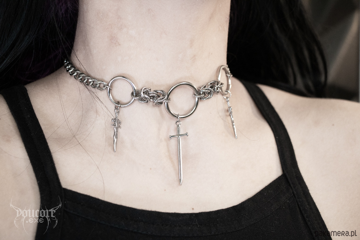 Chain mail goth miecze *Savage Dagger* choker stal nierdzewna