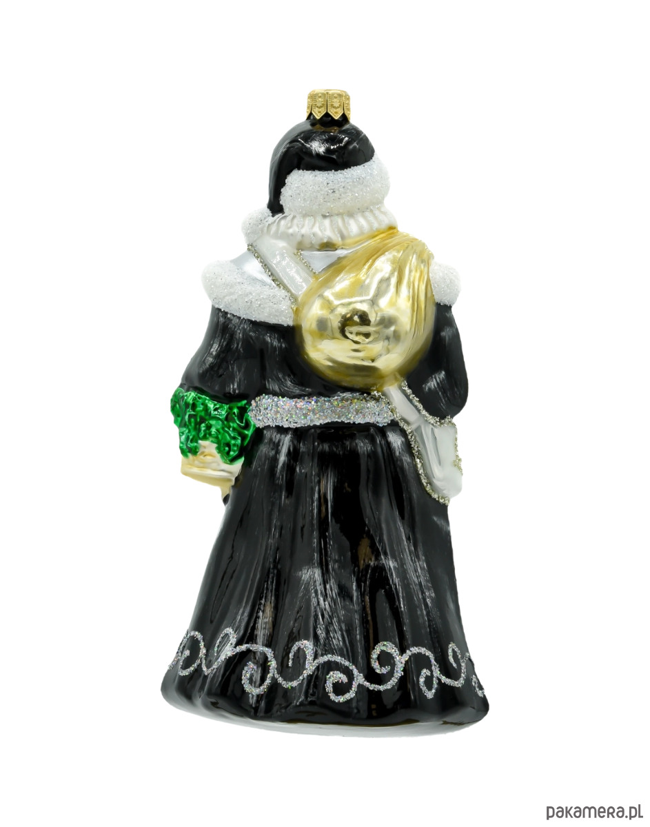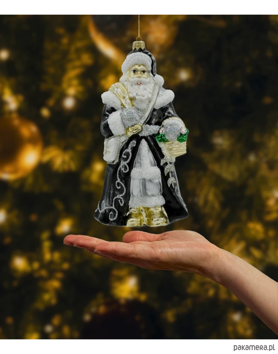 Szklana bombka Święty Mikołaj w Czarnej Szacie to doskonała ozdoba, która łączy tradycję z nowoczesnym, eleganckim stylem. Dzięki swojemu nietypowemu designowi, stanie się ona wyjątkowym akcentem w Twoim świątecznym wystroju, podkreślając luksusowy charakter Twojej choinki. Idealna dla osób, które cenią oryginalność i wysoką jakość wykonania.