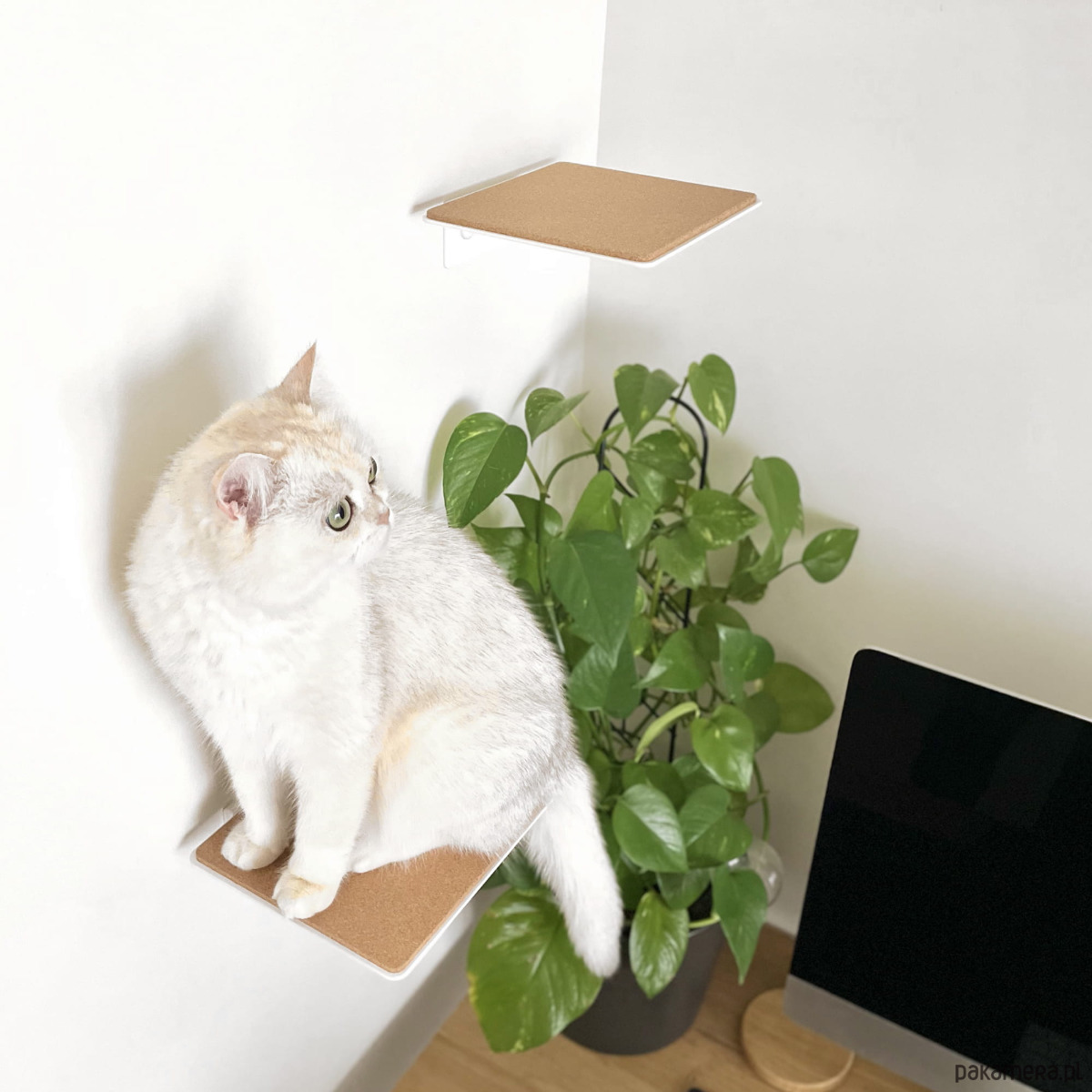 Schodek dla kota Sendero - Biały - Naturalny Korek