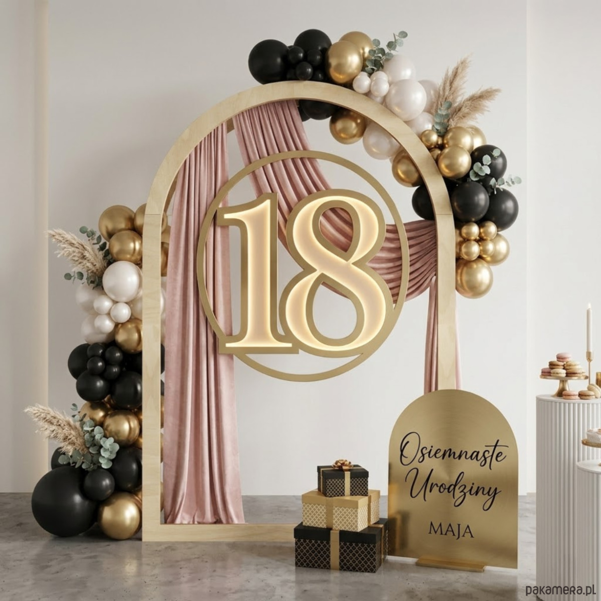 Elegancki drewniany łuk to stylowy element dekoracyjny, który doskonale sprawdzi się podczas różnego rodzaju uroczystości oraz jako ozdoba wnętrz. Dzięki smuklejszej ramie prezentuje się lekko i nowocześnie, idealnie wpisując się w aktualne trendy dekoracyjne.To doskonała baza do tworzenia wyjątkowych aranżacji – zarówno minimalistycznych, jak i bogato zdobionych.