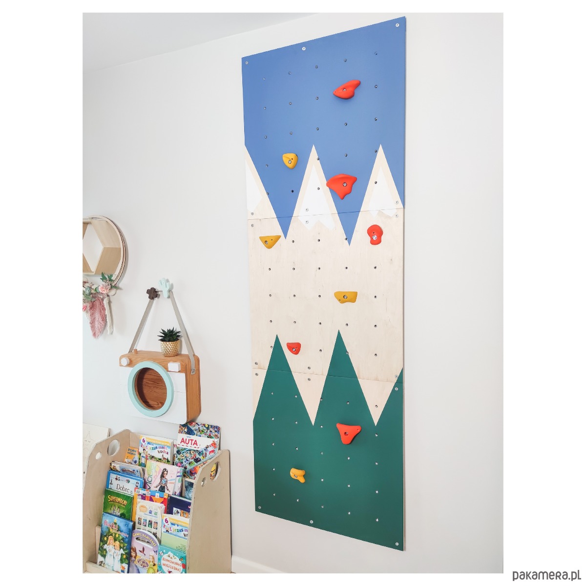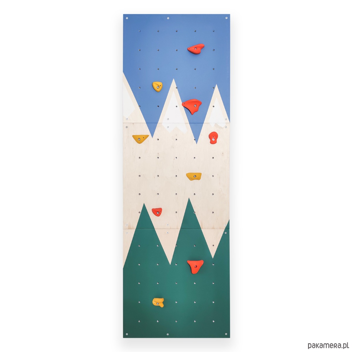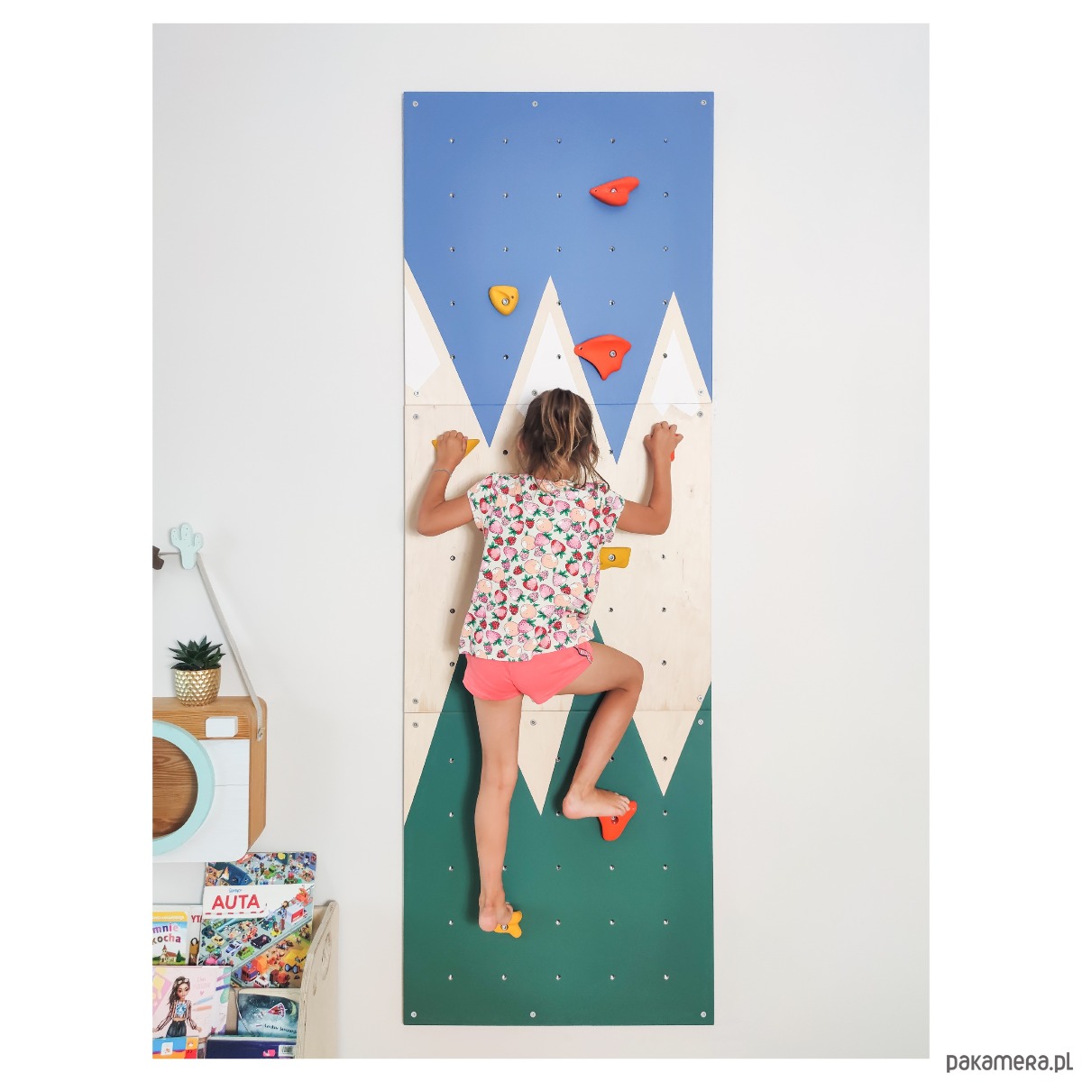 - 3 x panel wspinaczkowy o wymiarach 75 x 75x 1,5 cm (po zmontowaniu 225 cm x 75 cm)