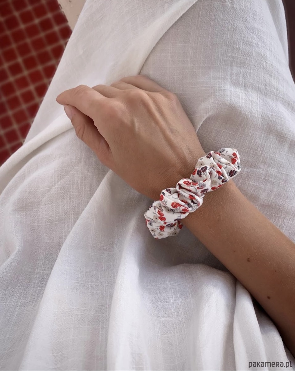 Delikatna dla włosów, nie ciągnie i nie łamie kosmyków. Idealna do każdej fryzury. Pięknie prezentuje się również jako ozdoba na nadgarstku.