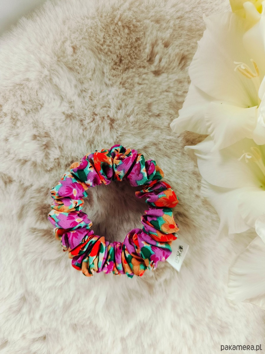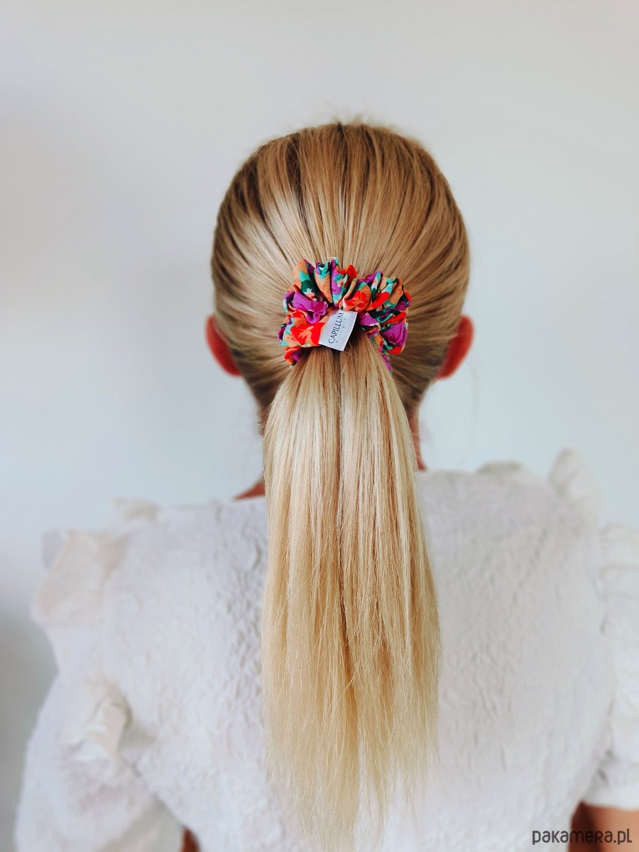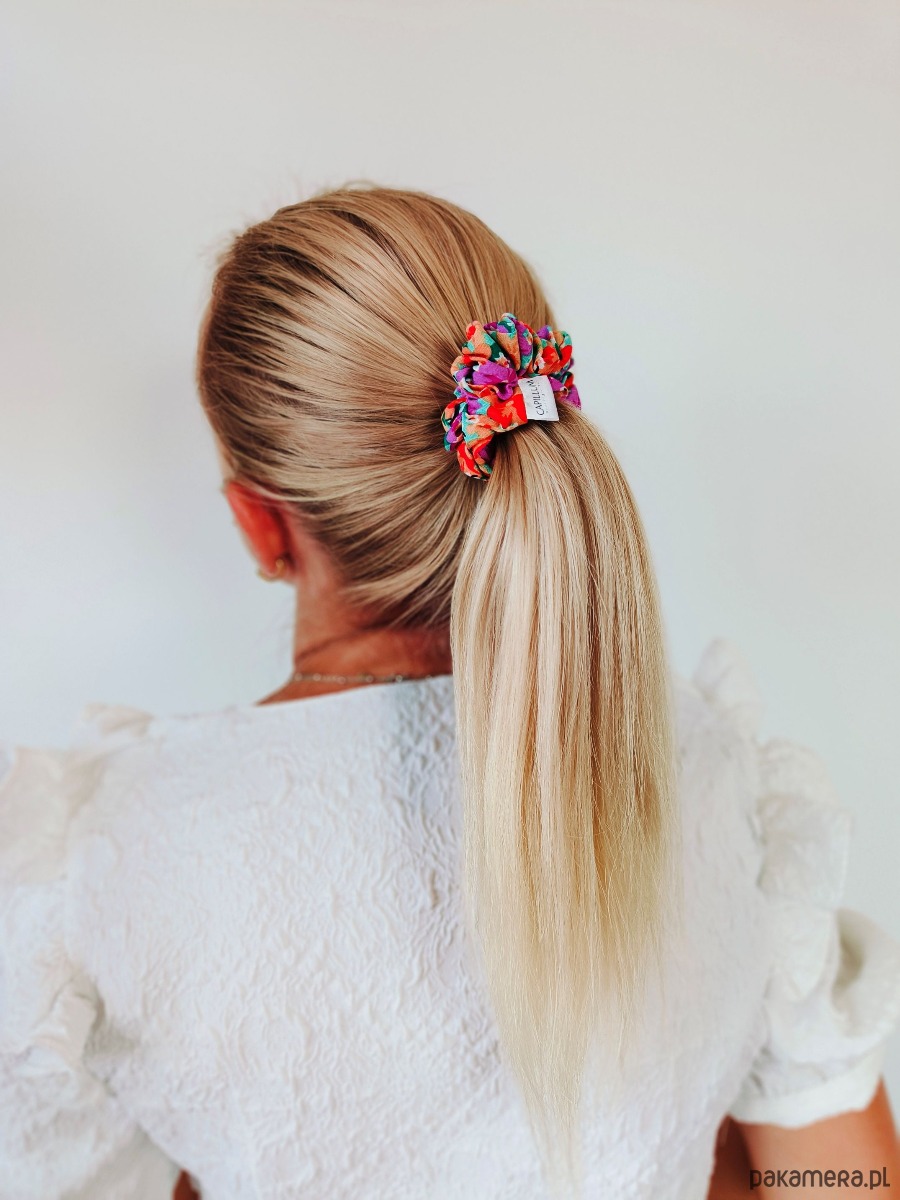 Nasza scrunchie z naturalnej wiskozy w kolorze różu, pomarańczu i zieleni to połączenie elegancji i wygody w jednym.