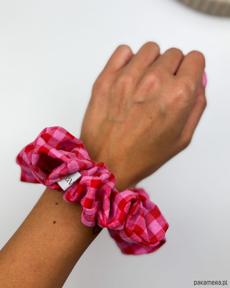 Wyrazista kratka z nutą czerwieni i różu – stworzona dla tych, które nie boją się koloru. Scrunchie strawberry to owocowy akcent, który ożywi każdą stylizację. Wystarczy jeden detal, by poczuć moc koloru.