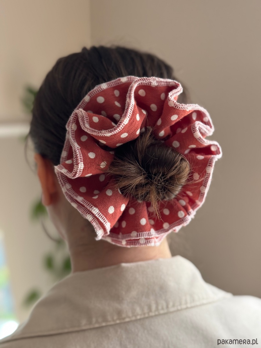 Wyrazista scrunchie podkreśla każde uczesanie, nadając mu charakteru.