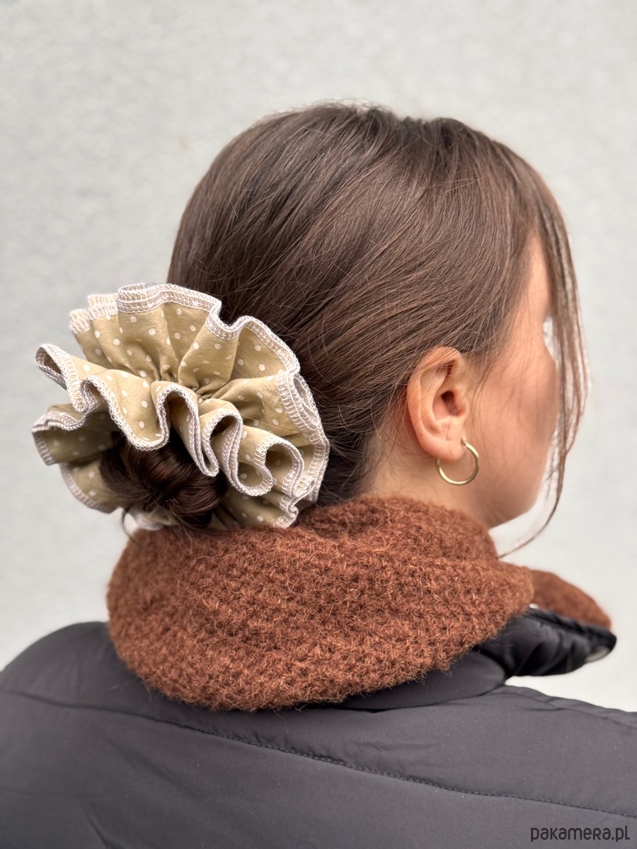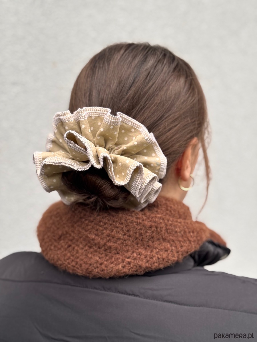 Wyrazista scrunchie podkreśla każde uczesanie, nadając mu charakteru.