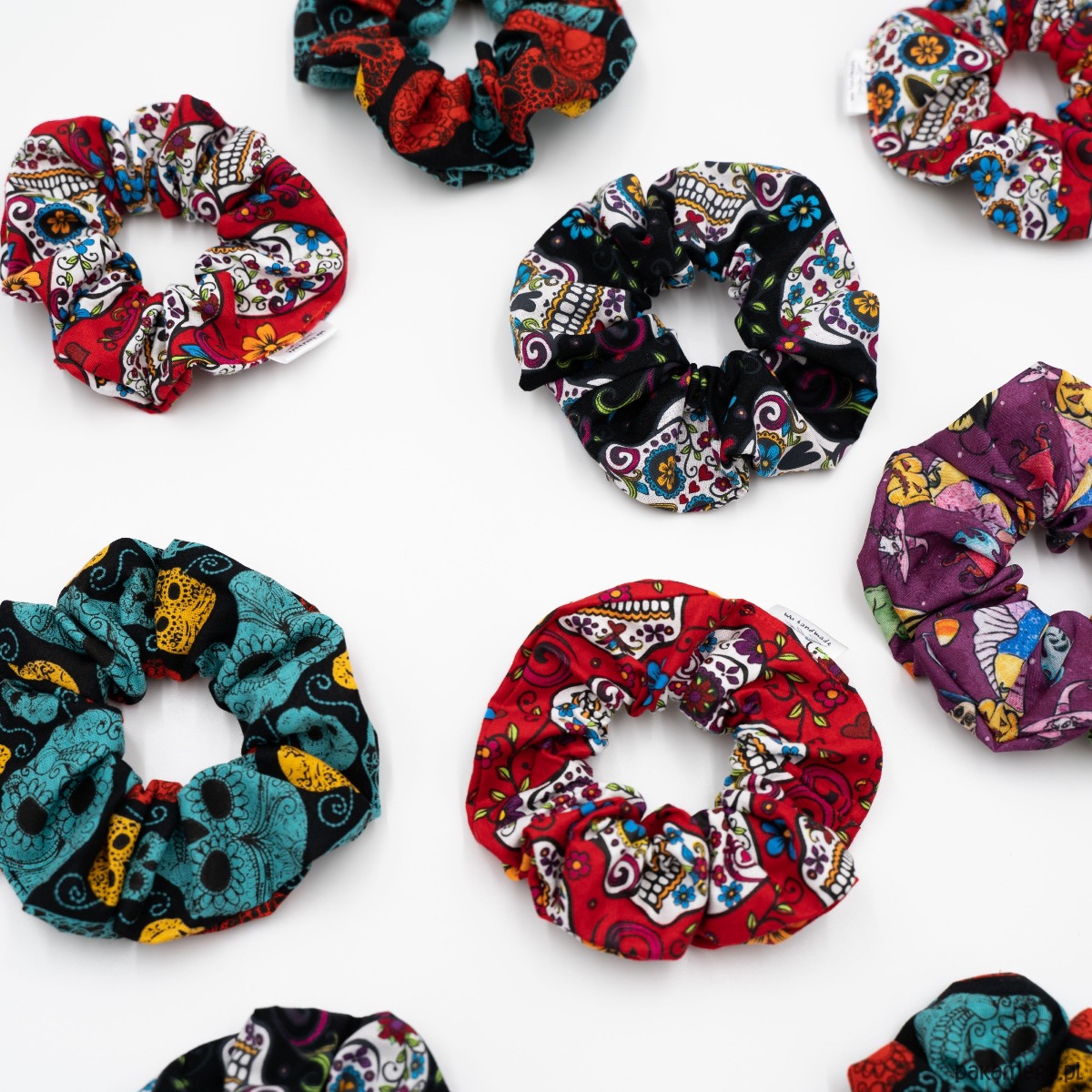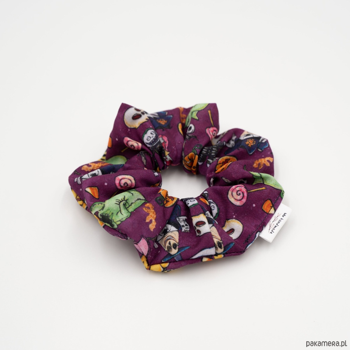 Klasyczna scrunchie uszyta z bawełny w halloweenowe wzory.