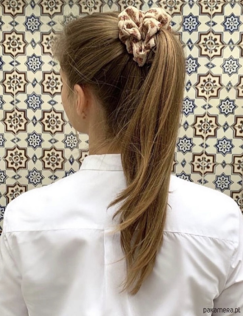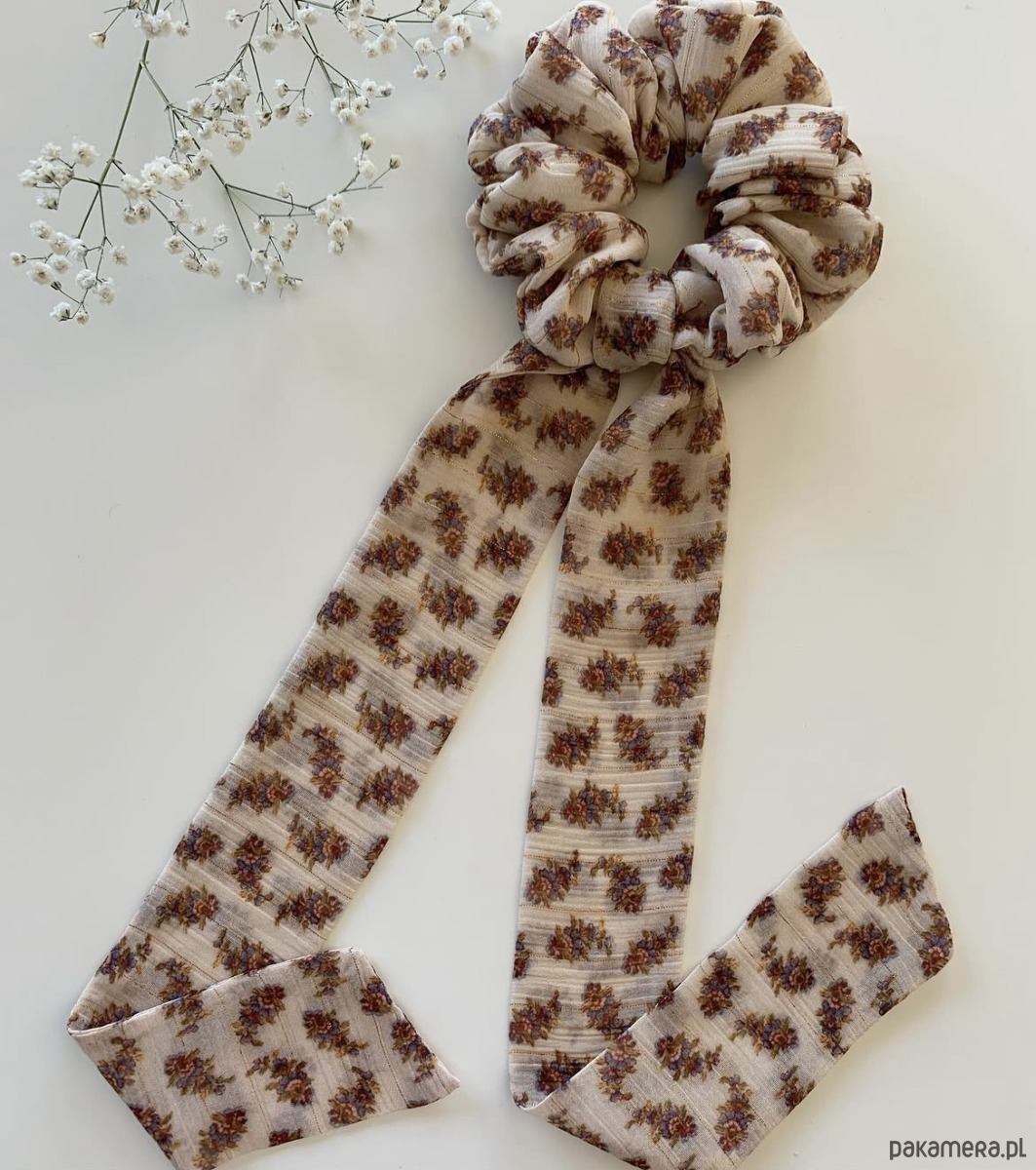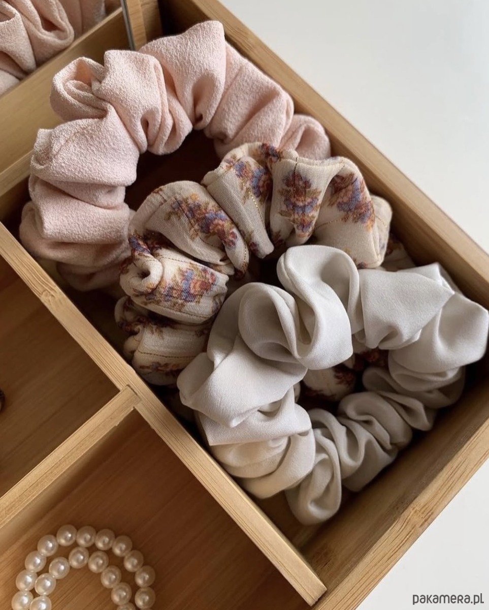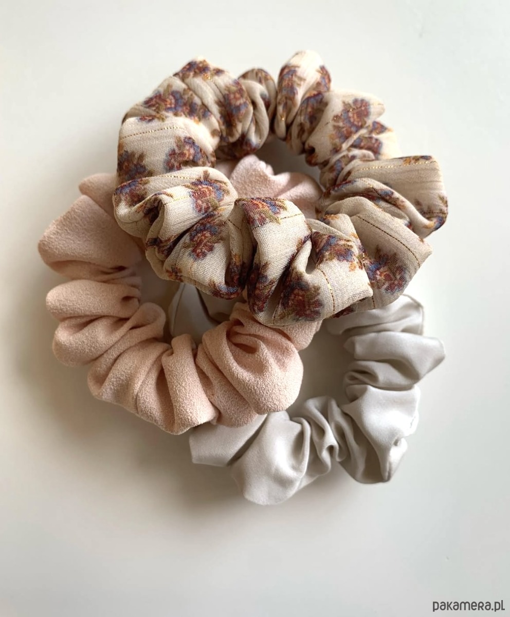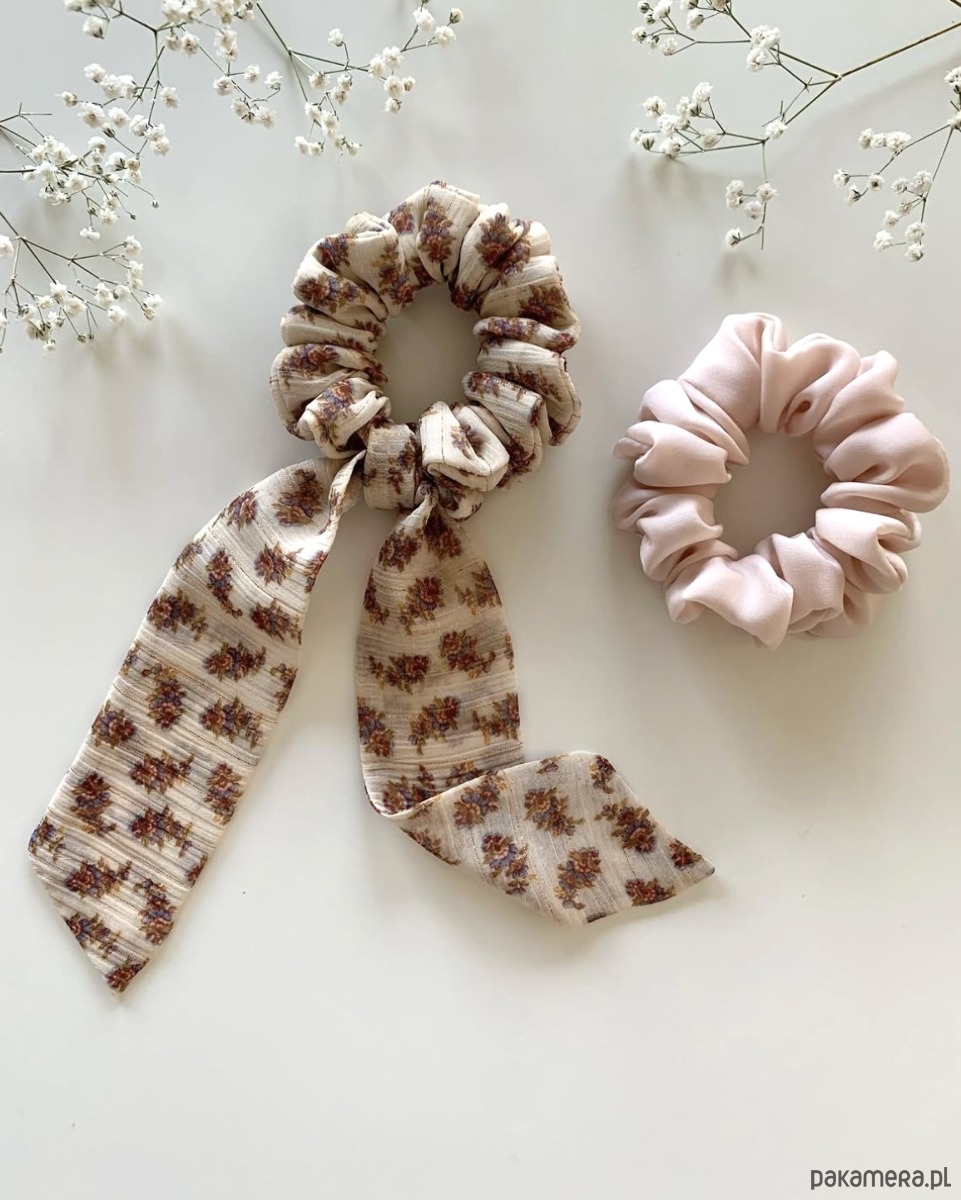 Tkanina ma subtelnie elegancką strukturę, dzięki czemu scrunchie wygląda jak mały, biżuteryjny detal we włosach. Zdecydowanie nie sposób jej przeoczyć.