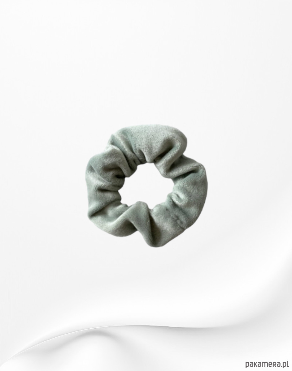 Scrunchie gumka frotka wąska welurowa zielona blada
