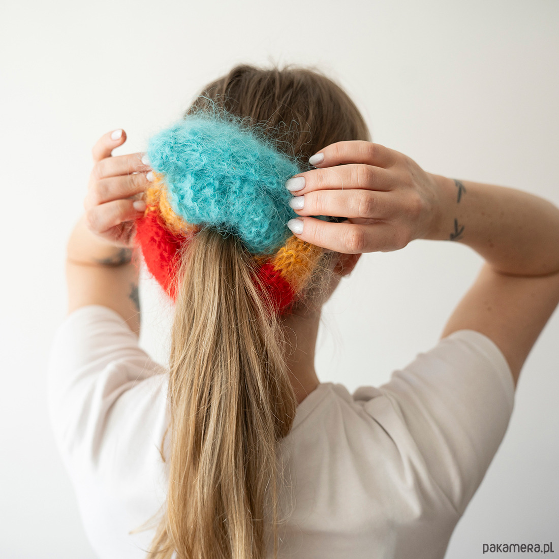 Skład naszych scrunchies to hołd dla natury. Od 70% do 100% to szlachetne włókna: puszysty moher, mięciutka alpaka, merynos, angora lub bawełna. Delikatny dodatek nylonu lub poliamidu (do 10%) stosujemy wyłącznie po to, aby wzmocnić gumkę i zapewnić jej długie życie.