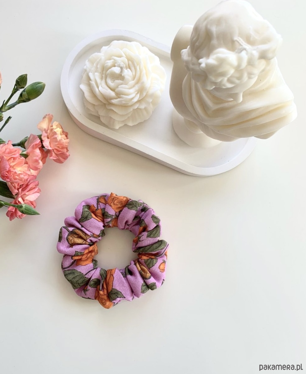 Fioletowa scrunchie w pomarańczowe róże Lizzie