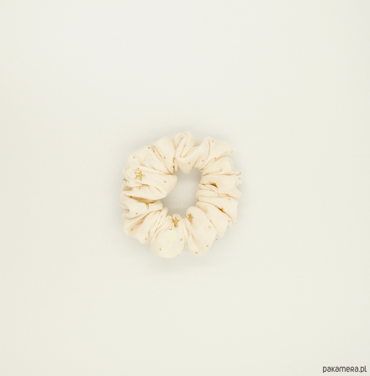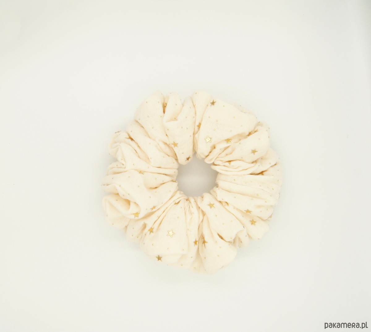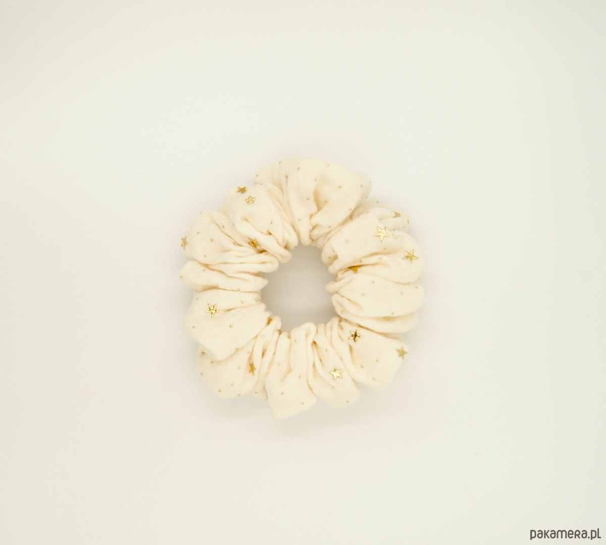 Muślinowa scruchie w kolorze ecru w złote gwiazdki.