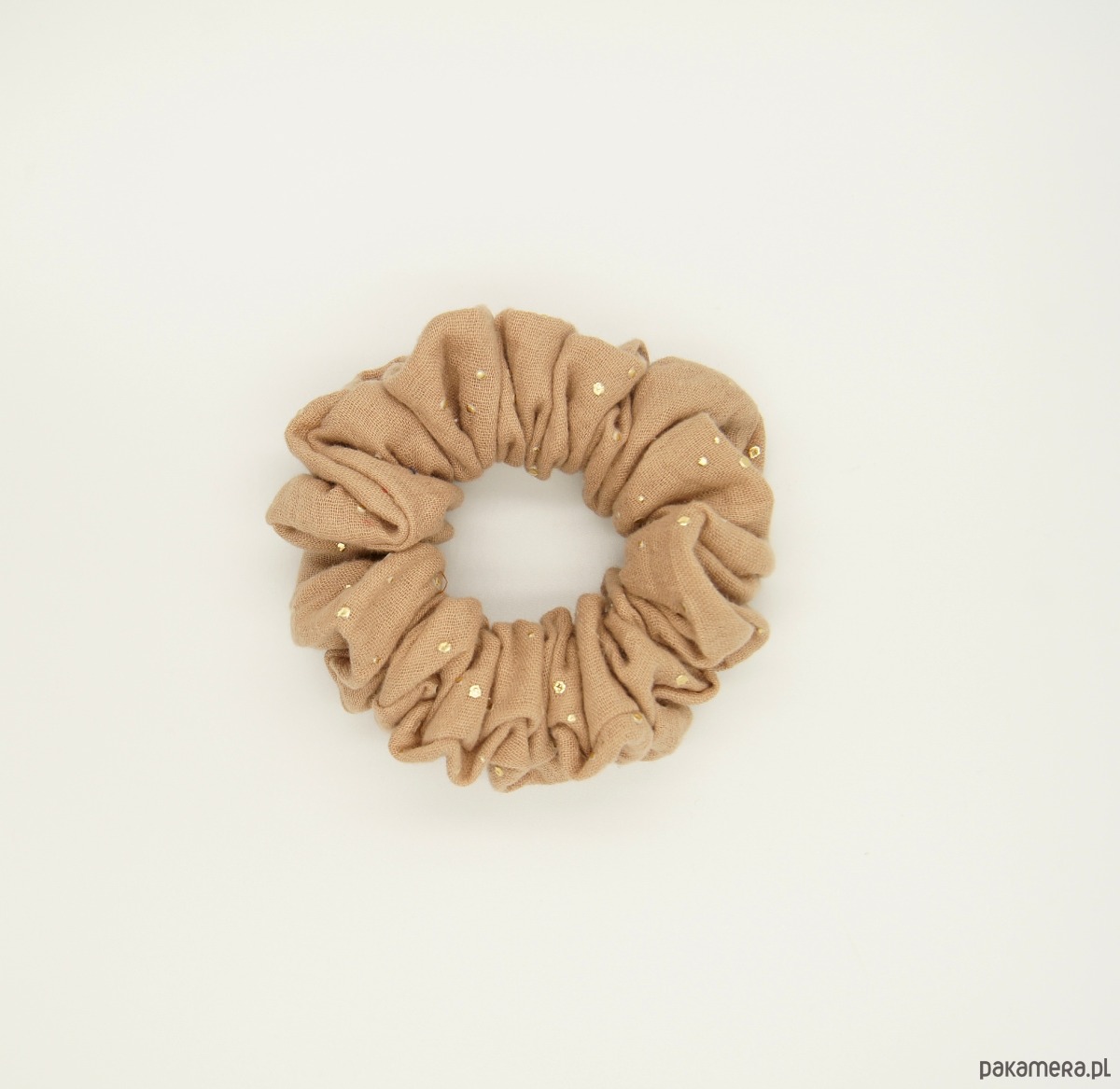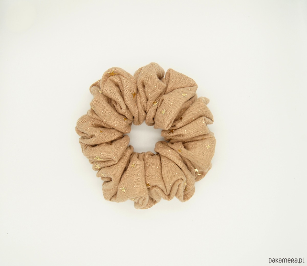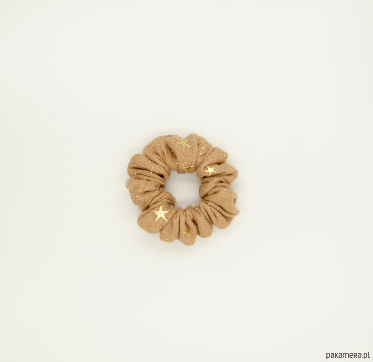 Muślinowa scruchie beżowy w złote gwiazdki.