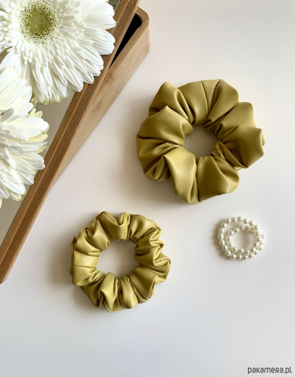 Scrunchie Nelma to stylowa gumka do włosów z miękkiej ekoskóry w energetycznym, żółtym kolorze ☀️