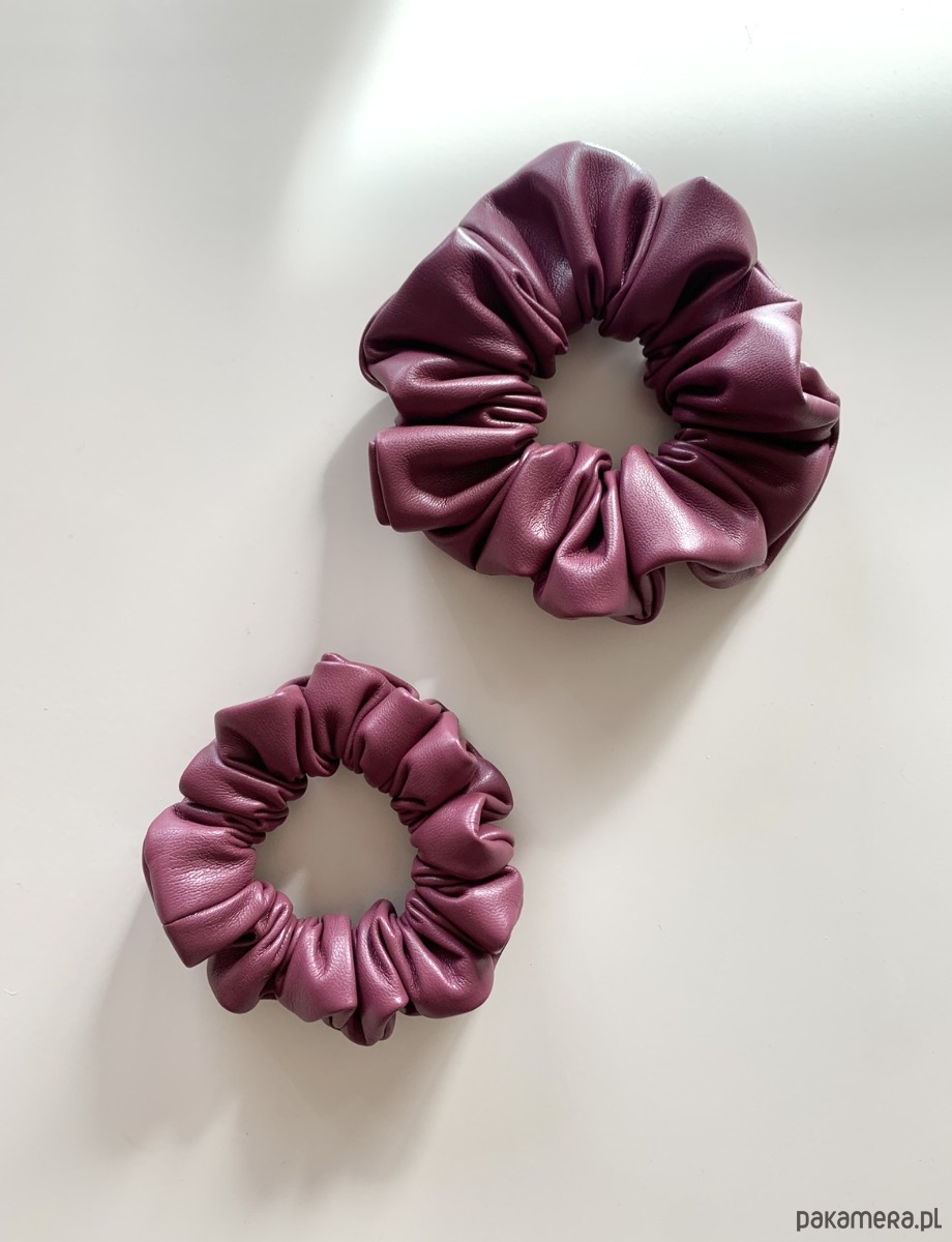 Scrunchie Diana z ekoskóry w śliwkowym kolorze