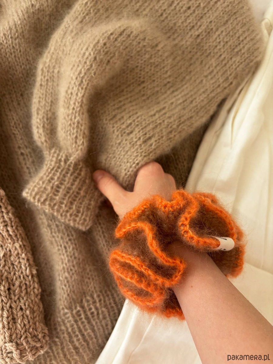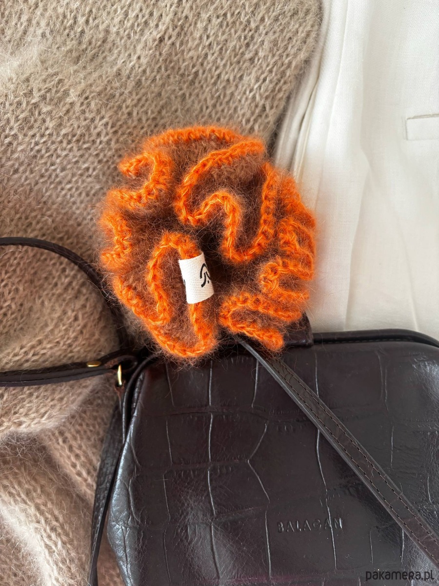 Moherowa gumka do włosów doskonale sprawdzi się jako dodatek do wiosennych stylizacji. Neonowy pomarańczowy akcent dodaje charakteru i nowoczesności, a naturalne włókna gwarantują komfort noszenia.