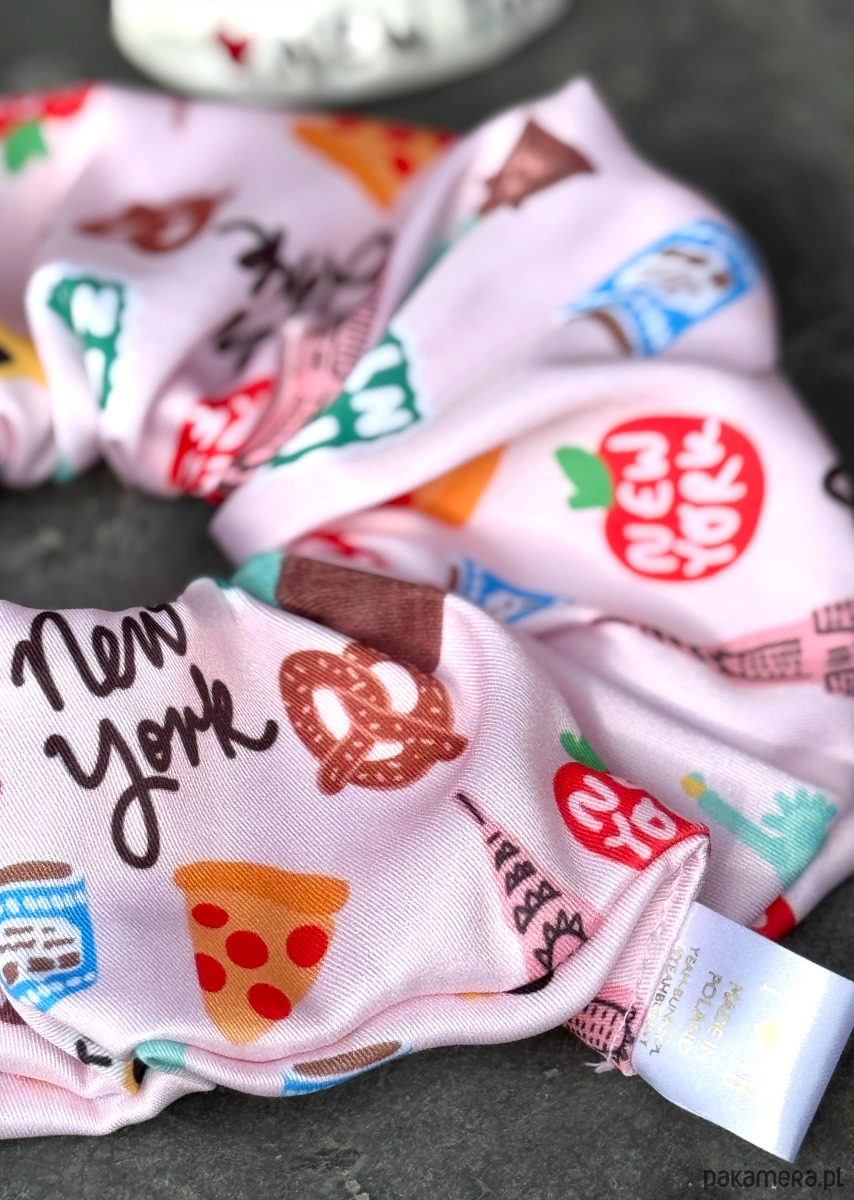 🗽 Nowy Jork na bladoróżowym tleStatua Wolności, żółte taksówki, drapacze chmur – wzór, który oddaje klimat miasta marzeń. To scrunchie dla każdej, która nosi w sercu American Dream i chce mieć kawałek USA zawsze przy sobie. „Nowy Jork nigdy nie śpi – i Ty też możesz błyszczeć jak Manhattan nocą.”